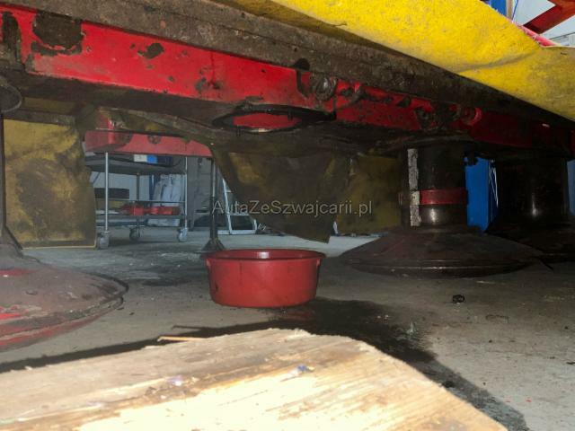 | Condition_and_Equipment | Zustand Fahrzeug muss transportiert werden (Höhe und Breite beachten). Weitere wichtige Hinweise Die Aufnahme Teleskoplader wird nicht mitgegeben Zapfwelle ist nicht dabei --- Weitere Beschädigungen 3 Mähteller beschädigt Trompete beschädigt Antriebswelle inkl. Lager beschädigt Schwader Zuführung inklusive Nabe gebrochen Schutztuch beschädigt Kegelrad beschädigt Träger rechts beschädigt |