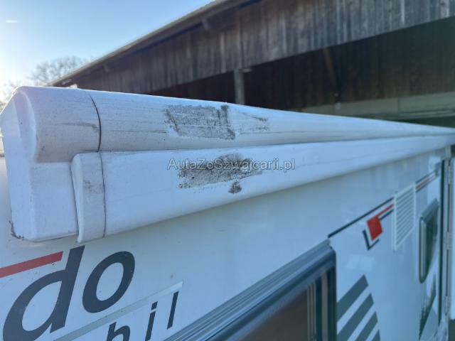 | Condition_and_Equipment | Demontage Persönliche Gegenstände oder Ladegut im Fahrzeug werden entfernt. Zustand Fahrzeug muss transportiert werden (Höhe und Breite beachten). Fahrzeug ist NICHT fahrbar. --- Dach Dachkabine eingedrückt. Innenwohnraum Innenwohnraum gepflegt. Inneneinrichtung gut erhalten. Sonstige Schäden Div.Carrosserie Teile sind leicht beschädigt. Hagel Hagelschaden leicht Front. Hagelschaden leicht Heck. Hagelschaden mittel auf der linken Seite. Hagelschaden mittel auf der rechten Seite. Hagelschaden schwer auf dem Dach. --- Sonstige Ausstattung und Zubehör Veloträger, DAB Radio mit Navi , Rückfahrkamera |