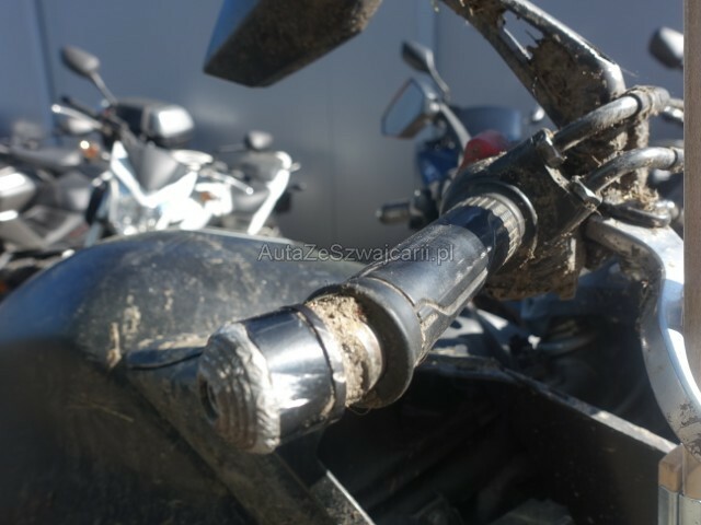 | Condition_and_Equipment | Schlüssel Nur ein Schlüssel vorhanden. --- Front Lenker verbogen. Weitere Beschädigungen Frontverkleidung — Lenker — Rückspiegel rechts + Hebel rechts + Lenkerspitze rechts — Verkleidung lat rechts — Tank — Rahmen — Keilplatte rechts — Bremspedal — Heckverkleidung — Schwinge hinten rechts. |