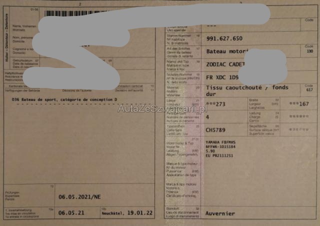| Condition_and_Equipment | Schlüssel Keine Schlüssel vorhanden. Boot - Kategorie Motorboot Hersteller- und Gewährleistungsbedingungen Die Fahrzeuggarantie oder Gewährleistung wird möglicherweise nicht vom Hersteller fortgeführt Standzeit Das Fahrzeug wurde lange nicht gefahren Weitere wichtige Hinweise Im Verkauf enthalten sind: - das Boot - der Motor - die Plane - der Transportwagen (nicht zugelassen, Reifen platt und defekt) --- Backbord (linke Seite) Backbordseite beschädigt. Steuerbord (rechte Seite) Steuerbordseite beschädigt. Motor Risiko Motor. Innenraum Innenraum ungepflegt. Starke Verschmutzung im Innenraum. Feuchtigkeitsschaden Innenraum Weitere Beschädigungen Aufgerissener Luftschlauch |