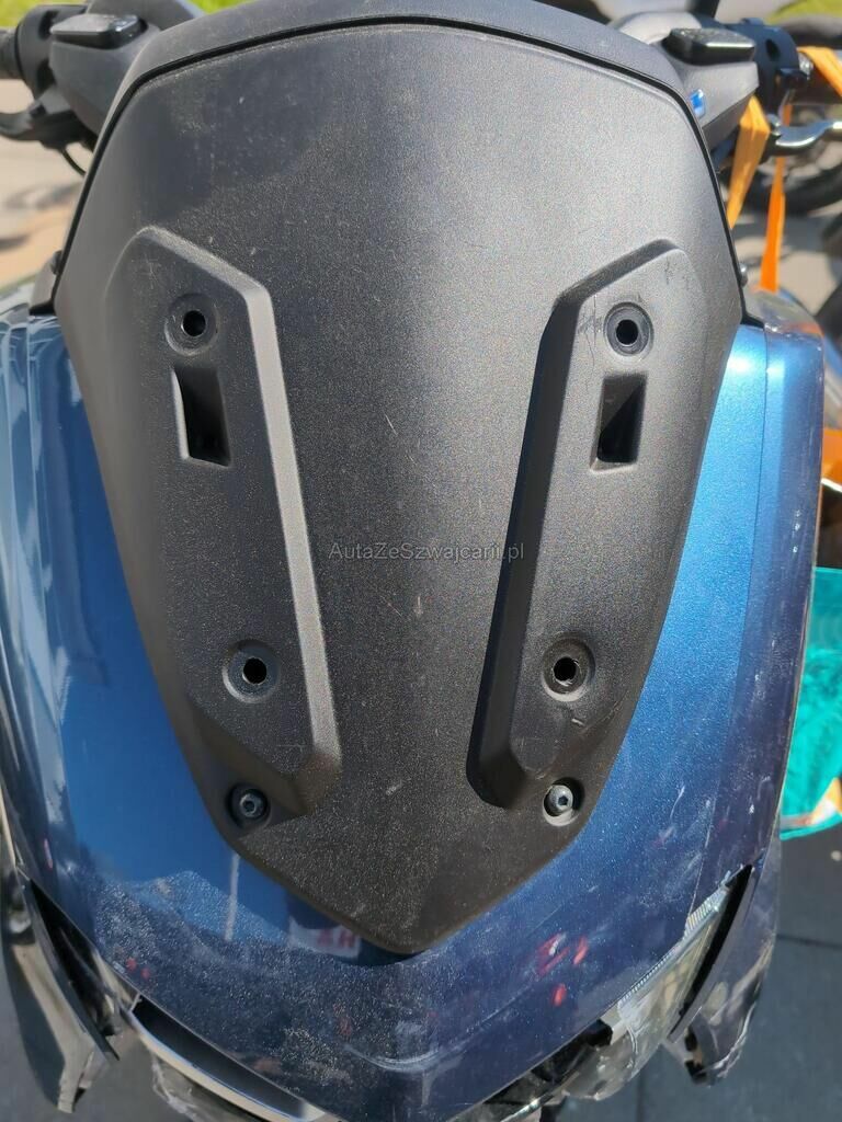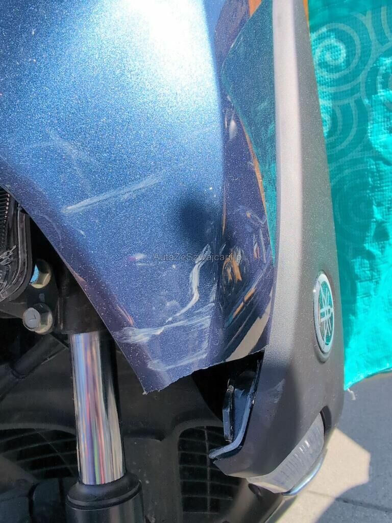 Aufprall in Fahrzeugfront mit Beschädigung von Verkleidungen, Scheinwerfer, Schutzblech, Verkabelung, Gabel sowie diversen Anbauteilen.