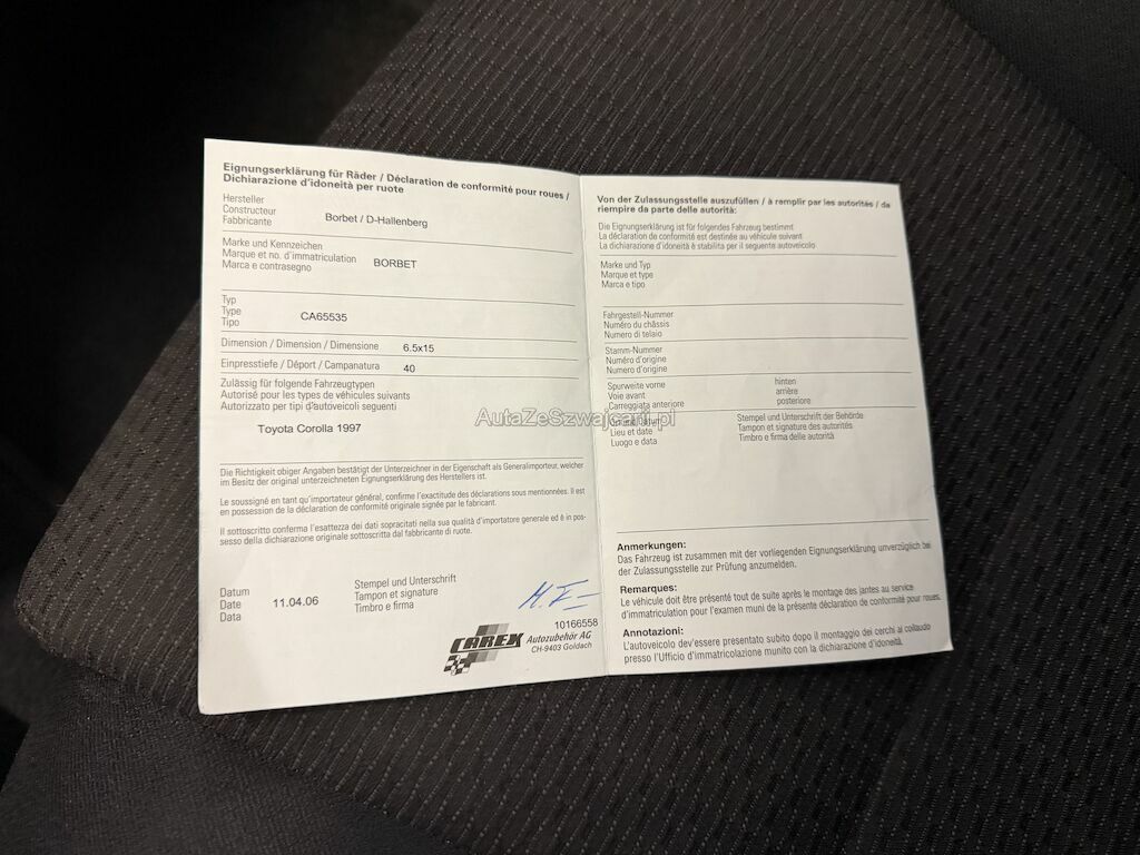 | Typ | Corolla 1.6 |
