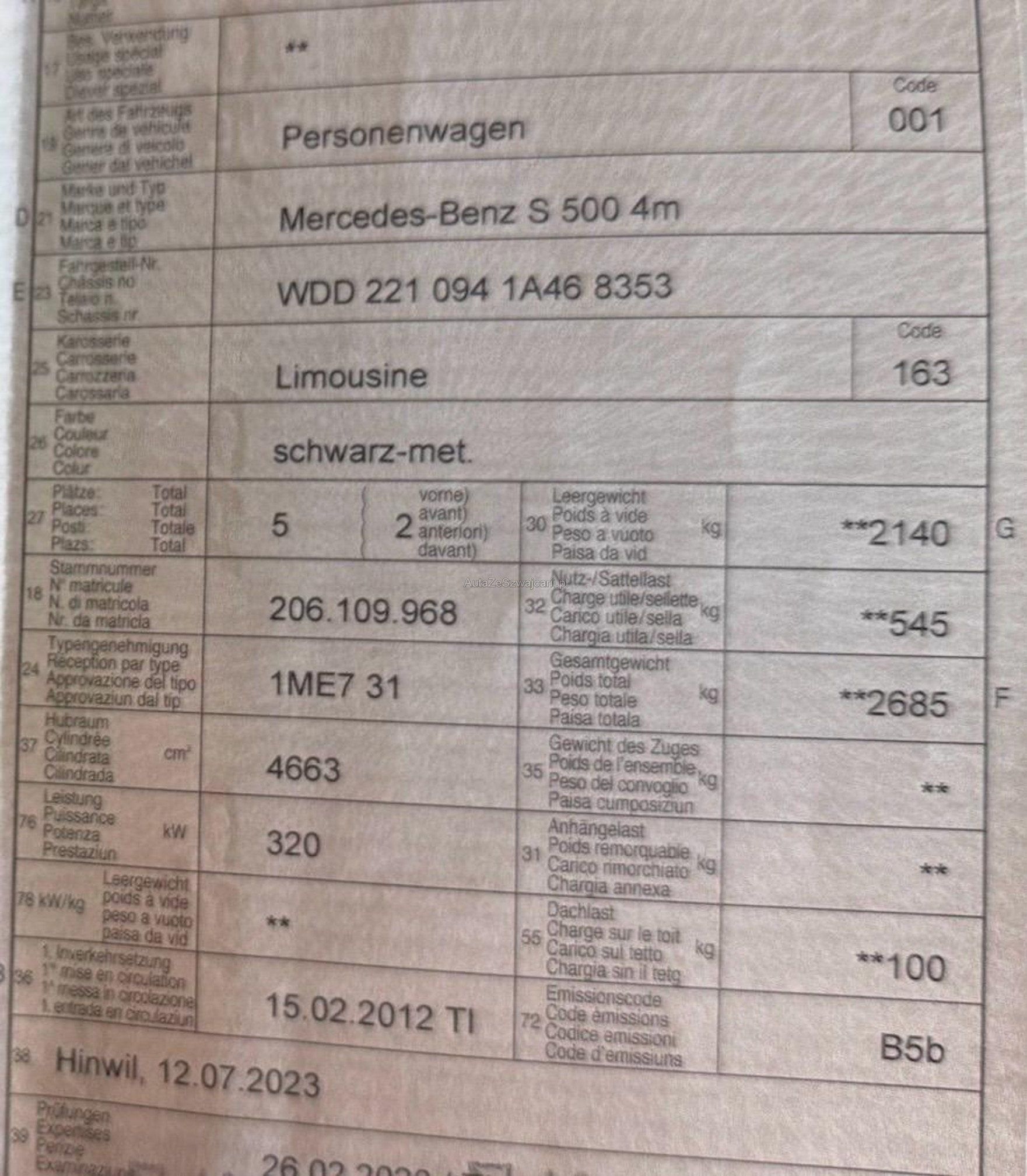 | Kommentar | Fahrzeug wurde nicht besichtigt! Wir kennen den Kunden und seine Fahrzeuge sind immer sehr gepflegt. Frisch ab Service und ab MFK, laut Kunde dem Kilometerstand entsprechend sehr gepflegter Zustand. |