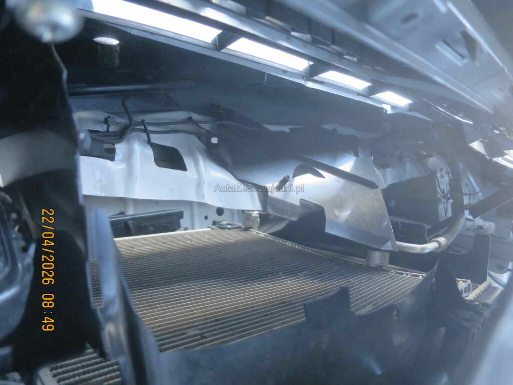 Motorhaube und beide Kotflügel deformiert, beide Scheinwerfer gebrochen, alle Kühler beschädigt, Schlossträger deformiert