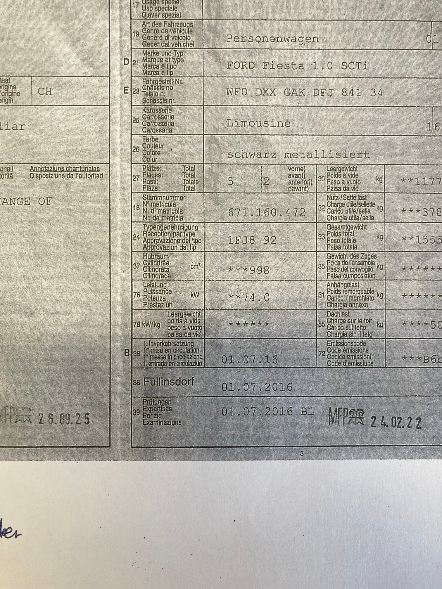 | Kommentar | Fahrzeugzustand gem. Fotos! Kupplung muss nächstens erneuert werden!! Frontscheibe hat Steinschlag!! Carrosserie in gutem Occ.-Zustand! Weitere Informationen sind nicht vorhanden. Das Fahrzeug wurde von uns nicht mechanisch angeschaut und geprüft! Letzte MFK 9.2025 gem. FZ-Ausweis! 8fach bereift, Reifen i.O.! Verkauf erfolgt ab Platz ohne Garantie und Nachwährschaft, sowie Wandelung und Minderung ausgeschlossen. Fahrzeug wurde nicht mechanisch geprüft! Schäden und Zustand siehe Fotos. Es werden keine Nachverhandlungen geführt, auch für Schäden die nicht sichtbar sind oder nicht deklariert wurden. Fahrzeug kann besichtigt werden, somit liegt das Risiko vollumfänglich beim Käufer. Fahrzeugabholung innerhalb von drei Arbeitstagen nach Erhalt des Zuschlages. Danach wird Fr. 50.-/Tag verrechnet! |