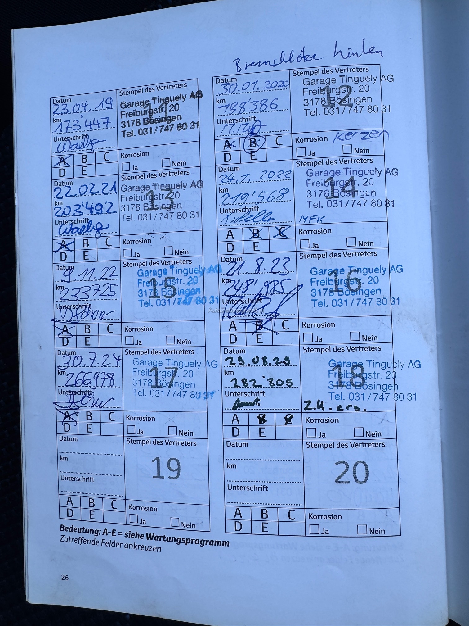 | Hintere Bremsen müssen ersetzt werden | No |