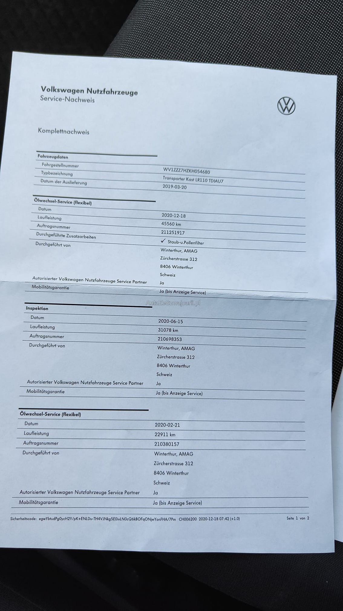 | VIN | WV1XXX |