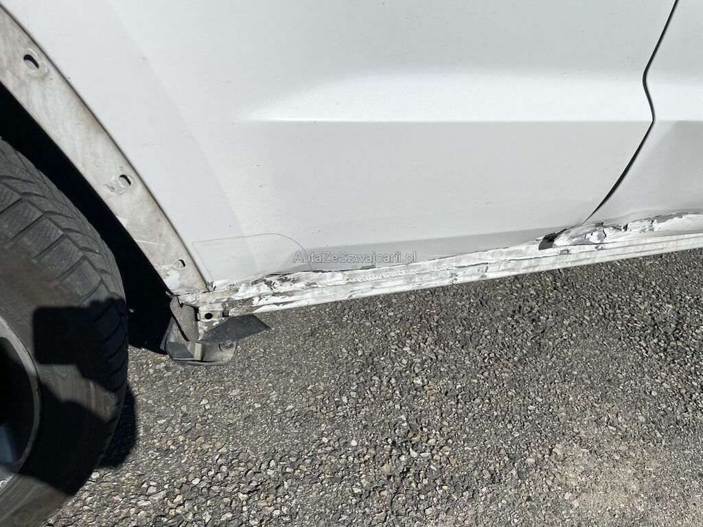 Collision du flanc droit: portes et bas de caisse endommagés. Divers autres éléments de carrosserie sont légèrement endommagés.