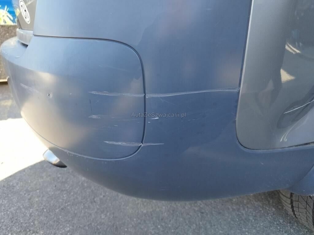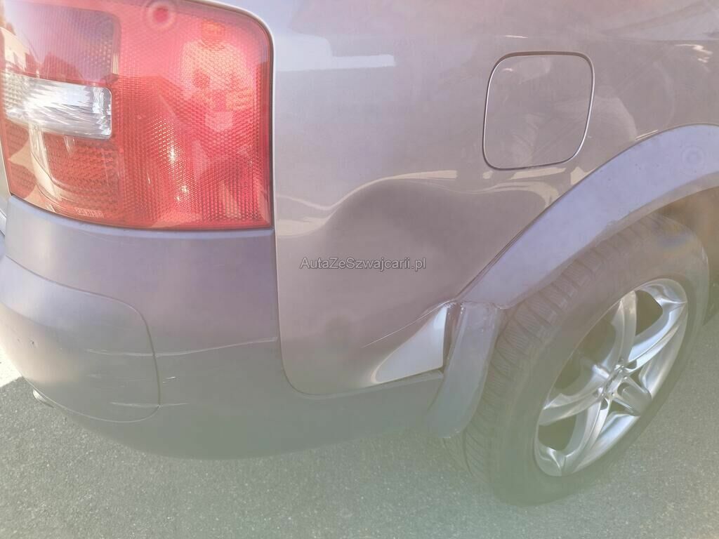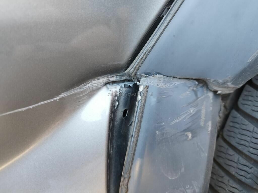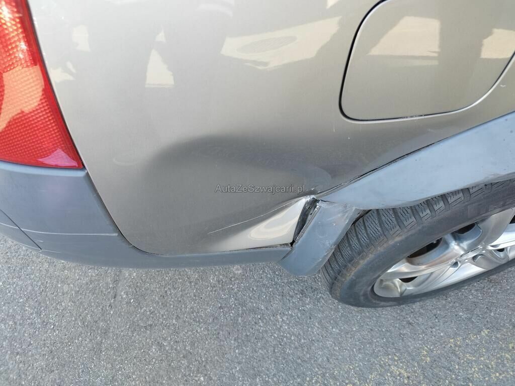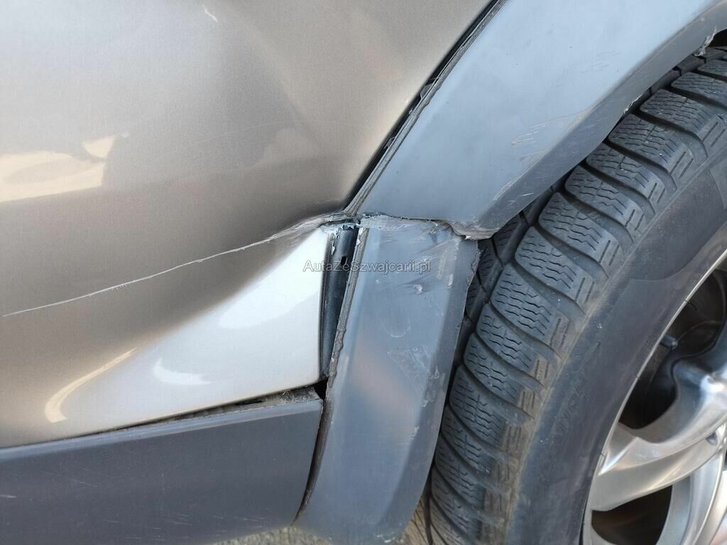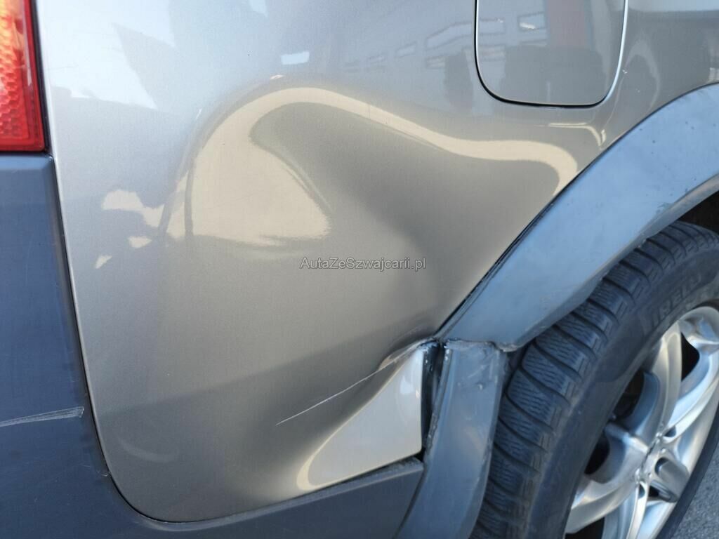 Die Seitenwand hinten rechts ist deformiert und aufgeschlitzt, der Radlauf hinten rechts ist gerissen, die Stossstange hinten rechts hat Kratzspuren.