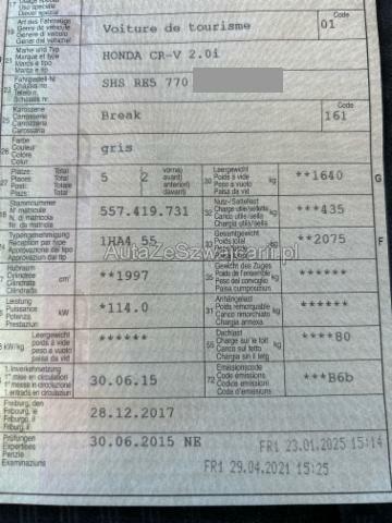 | Condition_and_Equipment | Zustand Fahrzeug muss transportiert werden (Höhe und Breite beachten). Fahrzeug ist NICHT fahrbar. Fahrzeug ist NICHT rollbar. Bereifung Fahrzeug wird mit Winterräder abgegeben. --- Heck Heck links eingedrückt. Sonstige Schäden Div.Carrosserie Teile sind leicht beschädigt. --- Serienaustattung Airbag Fahrer und Beifahrerseite Sitzheizung vorne Elektrische Fensterheber vorne + hinten Tempomat ABS Antiblockiersystem Seitenairbag Fahrer und Beifahrerseite Nebelscheinwerfer Aktive Kopfstützen Alarmanlage Scheibenwischer mit Regensensor Reifendruck-Kontrollsystem RDK EBD Elektronischer Bremskraftverteiler Park-Distanz-Sensor vorne + hinten Aussenspiegel elektrisch verstellbar/ heizbar und anklappbar Bremsassistent EBA Audiofernbedienung am Lenkrad Isofix-Kindersitzbefestigung Vorhangairbags vorne + hinten Servolenkung elektrisch Leichtmetallfelgen 17" Rückfahrkamera Automatisch abblendbarer Innenspiegel Zwei Zonen-Klimaanlage Elektr. Lendenwirbelstütze Fahrersitz Stabilitätssystem VSA Stop + Start System LED Tagfahrlicht Rücksitze umklappbar 60/40 Bluetooth Freisprecheinrichtung Keine Gewähr auf die Angaben der Serienausstattungen Honda Connect Sonderausstattung Metallic-Lackierung |