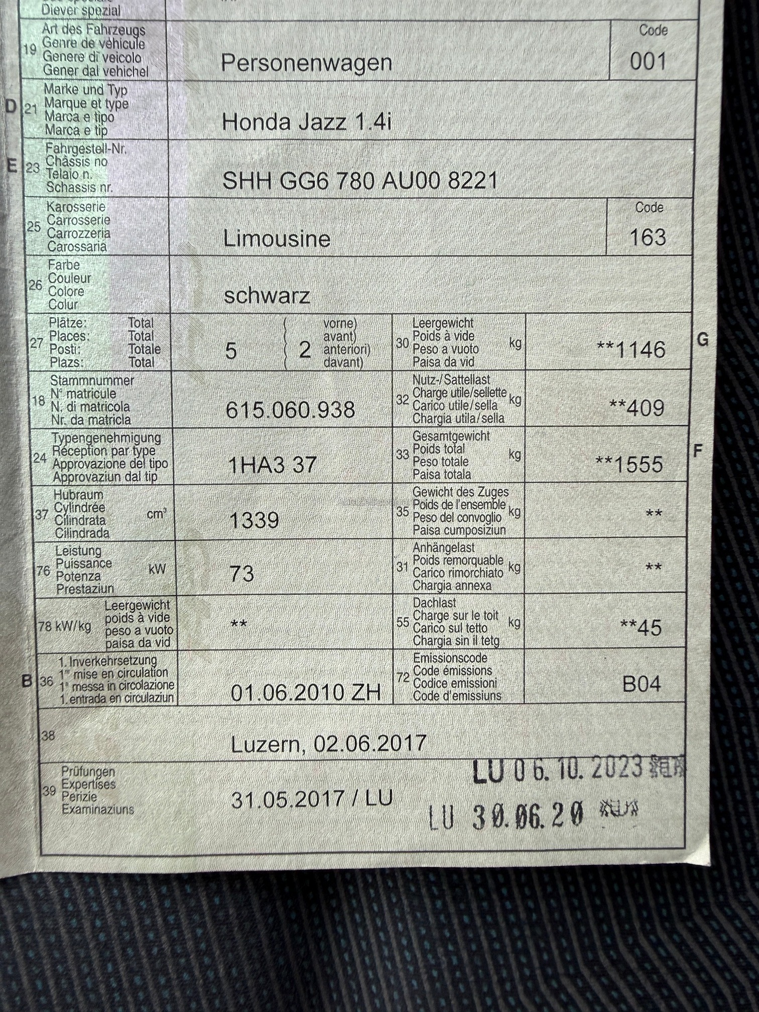 | Kommentar | Es wurde keine Technische Kontrolle am Fahrzeug durchgeführt. Sichtbare Gebrauchspuren wie auf den Fotos. 2 Winterreifen sind zu ersetzen. Das Auto wird ab Platz verkauft. |