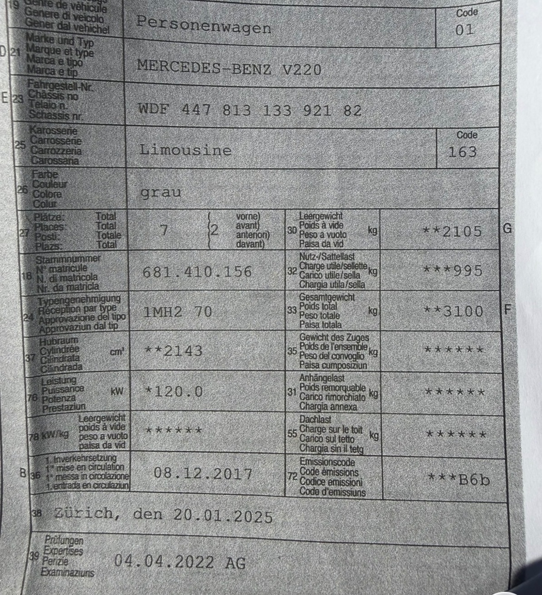 | Kommentar | Veloträger für 2 E Bikes vorhanden. Service in 3000km fällig. Fahrzeug gepflegt. Bremsen vorne und hinten wurden ersetzt. 8 Fach Räder |