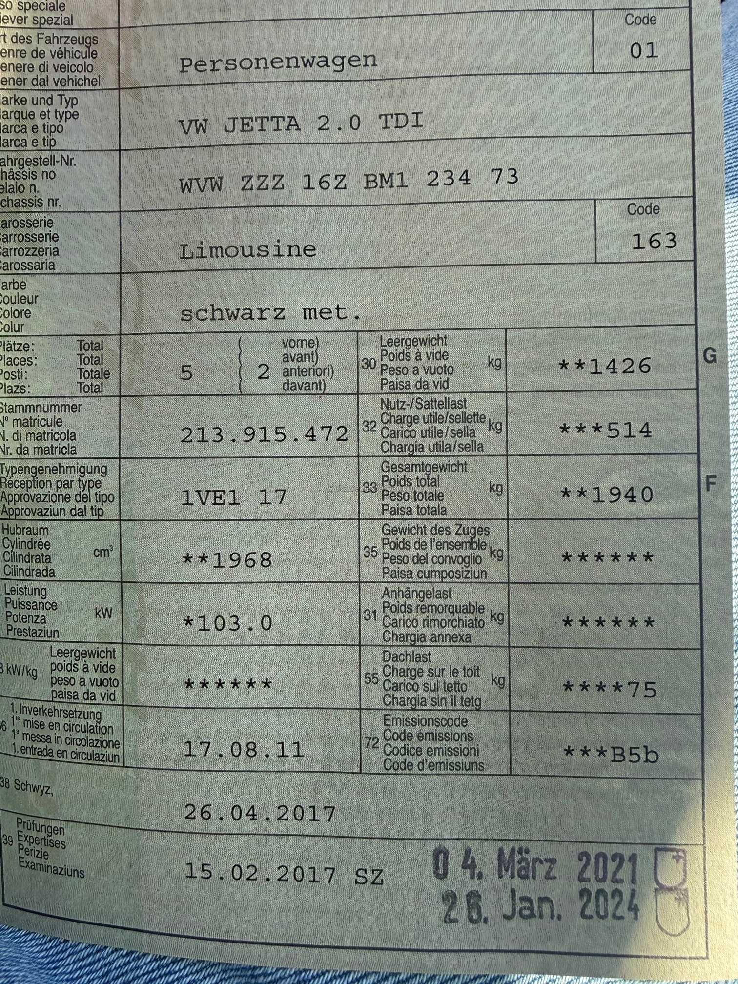 | Kommentar | Im Kundenauftrag zu Verkaufen Wagen läuft einwandfrei Motor Getriebe in Ordnung Das Kupplungspedal ist sehr weich und bleibt oft durchgedrückt (unten). Rad hinten Links dreht sich sehr streng Es wurde keine Diagnose oder Werkstatt Test durchgeführt Nach Zuschlag muss das Fahrzeug innert 3 Tagen abgeholt werden. Ab den 4 Tag fallen gebühren von 50.- pro Tag an. Kein Werkstatttest durchgeführt, wird ab Platz ohne Garantie verkauft. Bei einer Fahrzeugbeschreibung kann immer etwas vergessen oder nicht gesehen werden. Das Risiko liegt somit vollumfänglich beim Käufer. Um Missverständnisse zu vermeiden kann das Fahrzeug auf Voranmeldung besichtigt & getestet werden. Wird davon bewusst kein Gebrauch gemacht, liegt die Verantwortung beim Käufer. Nach Zuschlag, keine Nachverhandlungen möglich. Ab Platz ohne Garantie, Wandelung und Minderung werden wegbedungen. Bei Fragen |