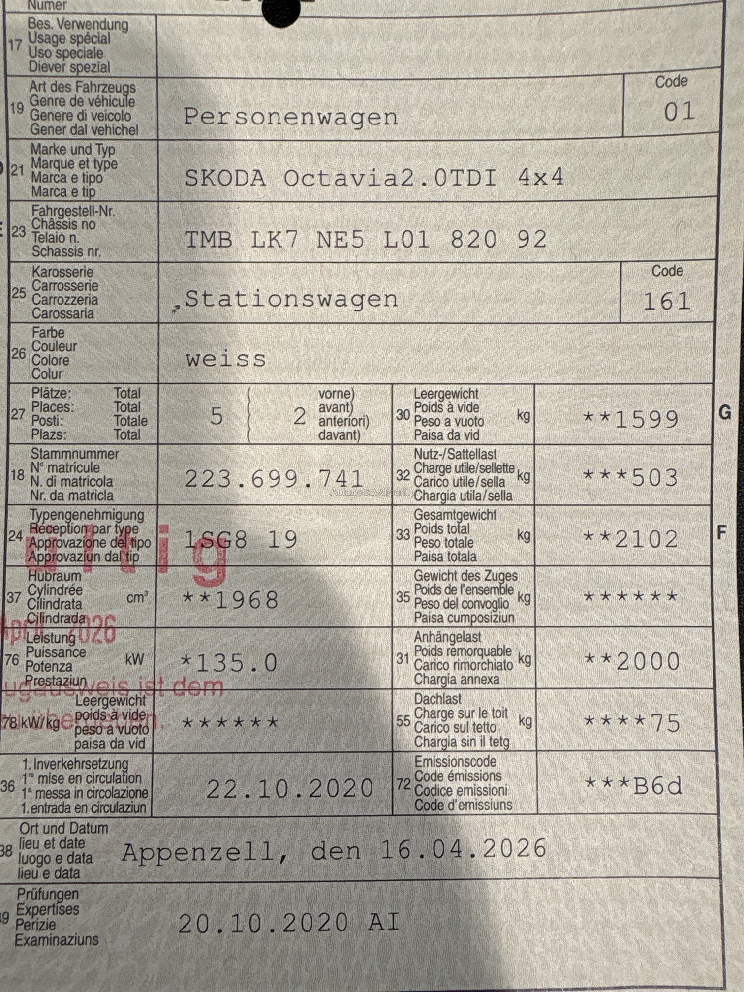 | Letzte Inspektion | 2020-10-01 |