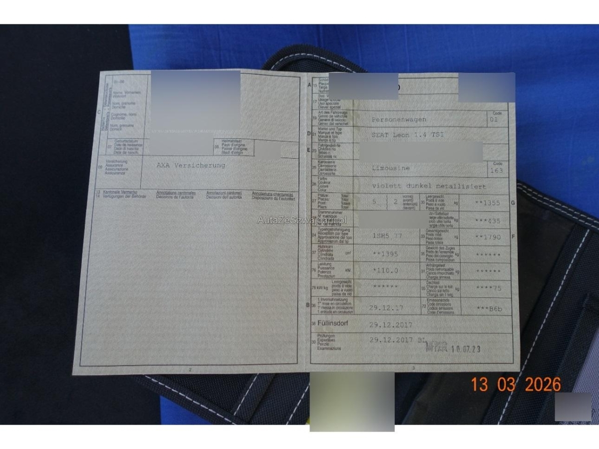 | Sonderausstattung | 4 Leichtmetallfelgen 18J mit Pneu, Assist: Einparkhilfe vorne und hinten mit optischer Anzeige, Assist: Rückfahrkamera, Dachhimmel schwarz, Lackierung: Metallic-Lackierung, Lenkrad mit Schaltwippen, Licht: LED Scheinwerfer, Media: Kartenmaterial ''Europa'' für Navigationssystem, Paket Alcantara und Sportsitze, Paket: Fahrerassistenzpaket 4, SEAT Garantie: Garantie 5 Jahre oder 100'000 km (ab 1. Inv.), Schlüsselloses Schliess- und Startsystem (KESSY), Winterpaket |