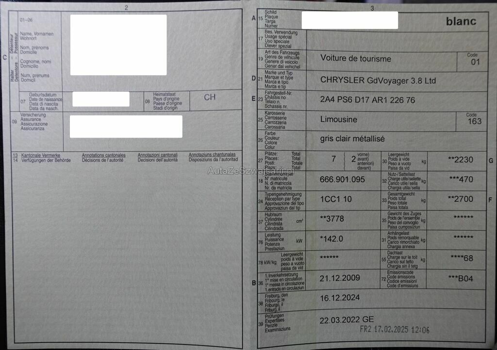 | Typ | Grand Voyager 3.8 Ltd |