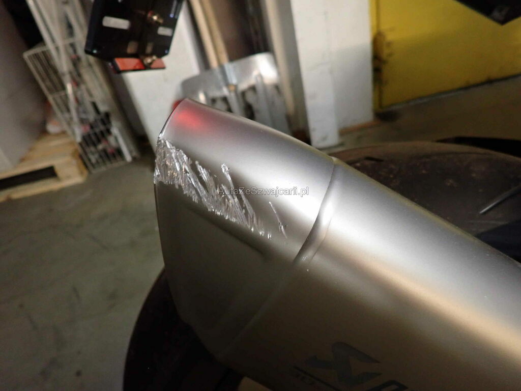 Motor läuft unrund und macht Geräusche; Cocpit, Lenker, Hebel, Tank und Heckrahmen eingedrückt; Sturzbügel aus Hauptrahmen gerissen; Motorendeckel und Auspuff Kratzer; diverse Verschalungen und Anbauteile gerissen oder verkratzt;
