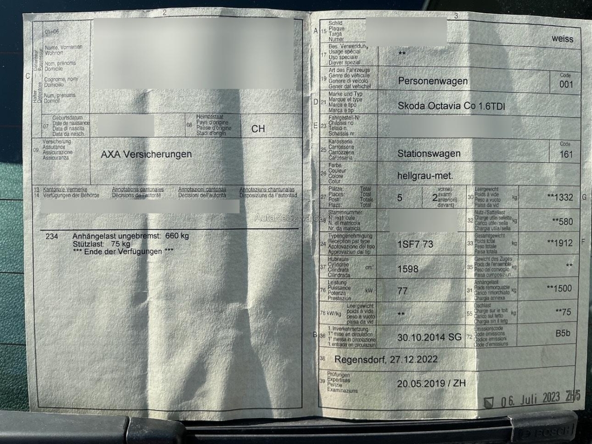| Fahrzeugausweis | Vorhanden |