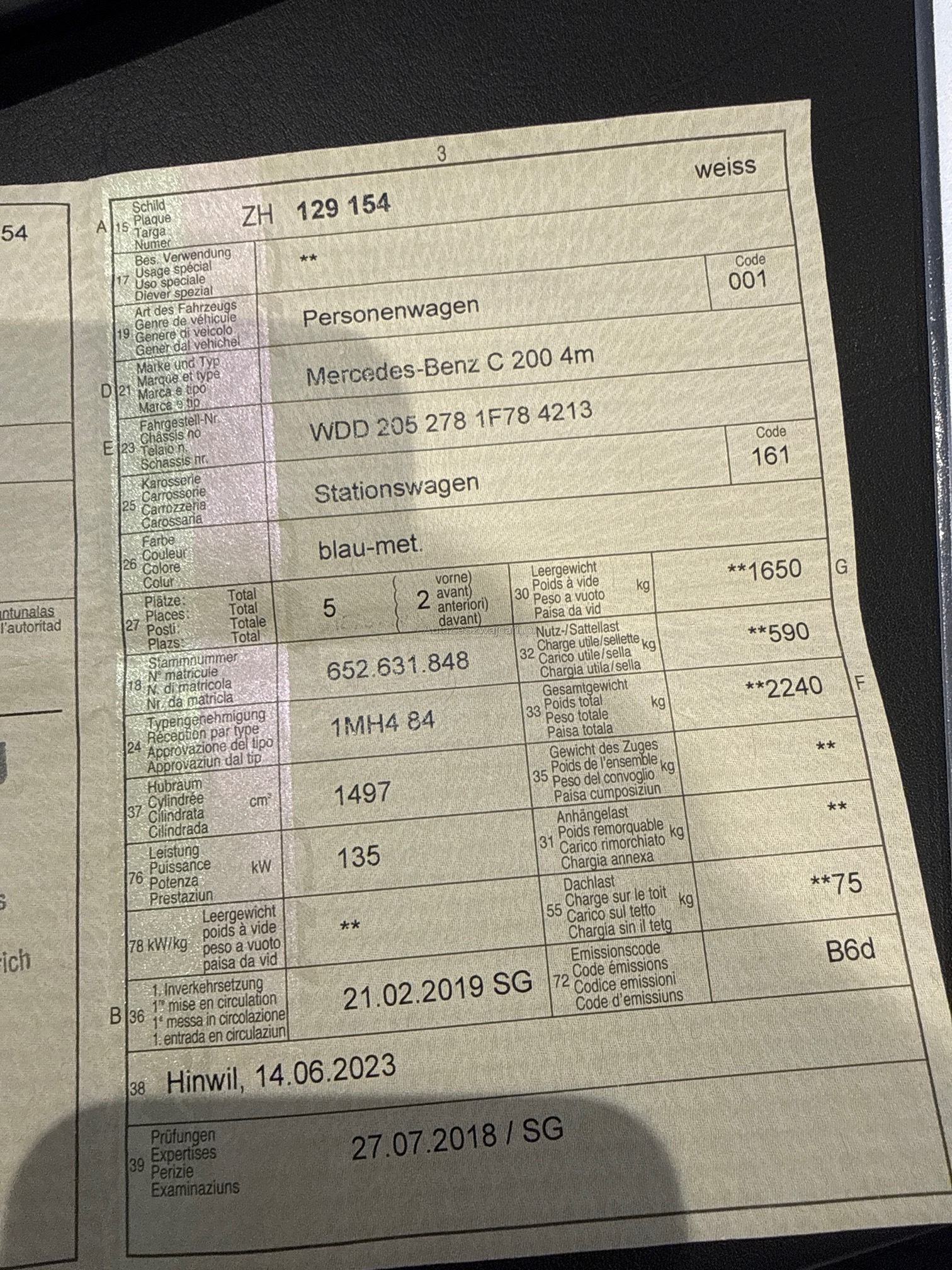 | Kommentar | Wagen muss komplett Poliert werden, div. Kratzer in der Karosserie, Klötze hinten bald fällig, kein Test durchgeführt. Ab Platz, ohne Gewährleistung |