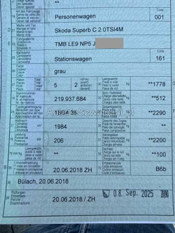 | Condition_and_Equipment | Zustand Fahrzeug muss transportiert werden (Höhe und Breite beachten). Fahrzeug ist rollbar. --- Front Frontblech/Maskenblech eingedrückt. Motor Alle Kühler vorne sind eingedrückt. Elektrik Kabelstränge verbrannt, beschädigt, abgerissen. --- Serienaustattung Airbag Fahrer und Beifahrerseite Sitzheizung vorne Scheinwerfer Waschanlage Sportfahrwerk Regensensor Mittelarmlehne hinten mit Durchladesystem Reifendruck-Kontrollsystem RDK Heckscheibenwischer Kopf und Seitenairbag vorne Park-Distanz-Sensor vorne + hinten Aussenspiegel elektrisch anklappbar (Memory) ESP/ ASR/ MSR/ ABS mit EBV Rückfahrkamera Seitenairbags hinten Netztrennwand Dachreling schwarz Vordersitze elektrisch verstellbar mit Memory Abfallbehälter Multifunktionsanzeige Maxi-DOT Knieairbag Fahrer SunSet (getönte Scheiben) Gepäckraumrollo Pack Sport Design Isofix Kindersitzverankerung für Rückbank Geschwindigkeitsregelanlage Soundsystem Adaptive Geschwindigkeitsregelung ACC Nebelscheinwerfer mit Corner Funktion Fernlichtassistent Parklenkassistent Ladeboden variabel Bi-Xenon Scheinwerfer mit AFS und Waschanlage LED Rückleuchten Keyless-Access Spurhalteassistent LDW Klimaanlage Climatronic 3-Zonen Sportsitze - Alcantara Multifunktions-Sportlenkrad Navigationssystem Columbus inkl. Festplatte Keine Gewähr auf die Angaben der Serienausstattungen Garantieverlängerung für das 3.und 4. Jahr/ 120'000 km LED Innenraumbeleuchtung Proaktives Insassenschutzsystem Rücksitzlehne mit Fernentriegelung Fahrprofilauswahl Toter-Winkel-Assistent Digitaler Radioempfang DAB+ Front Assist (Umfeldüberwachungssystem) Heckklappe elektrisch mit Freihandfunktion Progressiv Lenkung Verkehrsschild-Erkennungssystem SmartLink Leichtmetallfelgen 19" Vega Spurhalteassistent und Totwinkelassistent Müdigkeitserkennung Sonderausstattung Standheizung mit Fernbedienung Sitzheizung vorne + hinten Heizbare Frontscheibe Spezialfarbe Anhängerkupplung Sonnenschutzrollo für Seitenfenster hinten Panorama-Schiebedach Adaptive Geschwindigkeitsregelung ACC 210 km/h Pack Akustik mit Sunset Sonstige Ausstattung und Zubehör Sportfahrwerk, Distanzscheiben vorne und hinten |