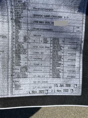 | Condition_and_Equipment | Zustand Fahrzeug ist rollbar. Bereifung Fahrzeug wird mit Winterräder abgegeben. Schlüssel Nur ein Schlüssel vorhanden. --- Front Front eingedrückt. Frontblech/Maskenblech eingedrückt. Längsträger vorne rechts und links gestaucht. Motor Alle Kühler vorne sind eingedrückt. Innenraum Gurtstraffer vorne ausgelöst. Glas Windschutzscheibe ist gerissen. Sonstige Schäden Div.Carrosserie Teile sind leicht beschädigt. Div. Roststellen am Fahrzeug. Lackierung matt (stumpf, beschädigt). --- Serienaustattung Airbag Fahrer und Beifahrerseite Elektronische Wegfahrsperre Elektrische Fensterheber vorne + hinten Aussenspiegel elektrisch verstellbar Scheinwerfer Waschanlage Kopfairbag vorne und hinten Gepäckraumabdeckung Isofix-Kindersitzbefestigung Stabilitätskontrolle VSC + Traktionskontrolle TRC Leichtmetallfelgen 17" Ersatzrad vollwertig Seitenairbags vorne Nebelscheinwerfer vorne Knieairbag Fahrer Dieselpartikelfilter Elektr. Lendenwirbelstütze Fahrersitz Smart entry-start/ Schliess- Startsystem Zentraldifferentialsperre Torsen Berganfahr- Bergabfahrassistent ABS und EBD Elektr. Bremskraftverteilung inkl. BA Multi-Informationsdisplay Keine Gewähr auf die Angaben der Serienausstattungen Sonderausstattung Radio/ CD |