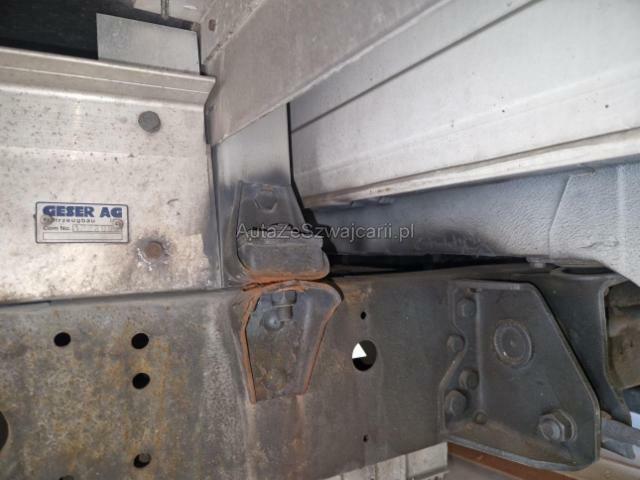 | Condition_and_Equipment | Zustand Fahrzeug muss transportiert werden (Höhe und Breite beachten). Fahrzeug ist NICHT fahrbar. Motor startet nicht, Ursache unbekannt. Batterie leer. Weitere wichtige Hinweise Das Getriebe wurde im Jahr 2024 erneuert. Die Plane und die Hebebühne wurden im Jahr 2025 erneuert. --- Links Anstoss links im Bereich der A-Säule. Tür vorne links ist eingedrückt. Front Front links eingedrückt. Kotflügel vorne rechts und links eingedrückt. Motorhaube eingedrückt. Frontblech/Maskenblech eingedrückt. Radhaus vorne links eingedrückt / gestaucht. Längsträger vorne links gestaucht. Fahrzeugvorbau nach rechts verschoben. Motor Risiko Motor. Risiko Getriebe. Motoranbauteile beschädigt. Achse Aufhängungsteile vorne links beschädigt. Lenkgetriebe ist beschädigt. Motoraufhängung/Aggregateträger ist beschädigt. Innenraum Fahrerairbag ausgelöst. Gurtstraffer ausgelöst. Sitz vorne rechts defekt. Glas Windschutzscheibe ist gerissen. Türscheibe vorne links ist zerbrochen / beschädigt. Weitere Beschädigungen Aufbau durch Anprall beschädigt. Schaden und Ausstattung gemäss beiliegenden Fotos. --- Serienaustattung Airbag Fahrerseite Elektrische Fensterheber Elektronische Wegfahrsperre Vorbereitung für Radioeinbau ESP Elektronisches Stabilitätsprogramm Schmutzfänger vorne Getönte Frontscheibe Tagesfahrtlichtschaltung Bordcomputer Dieselpartikelfilter ABS + EBV + ASR Keine Gewähr auf die Angaben der Serienausstattungen Sonderausstattung Radio/ CD Tempomat Anhänger-Steckdose 13-polig Nebelscheinwerfer vorne und Abbiegelicht Anhängerkupplung Kugelkopf inkl. Steckdose 13-polig Ausstattung Klimaanlage Tempomat |