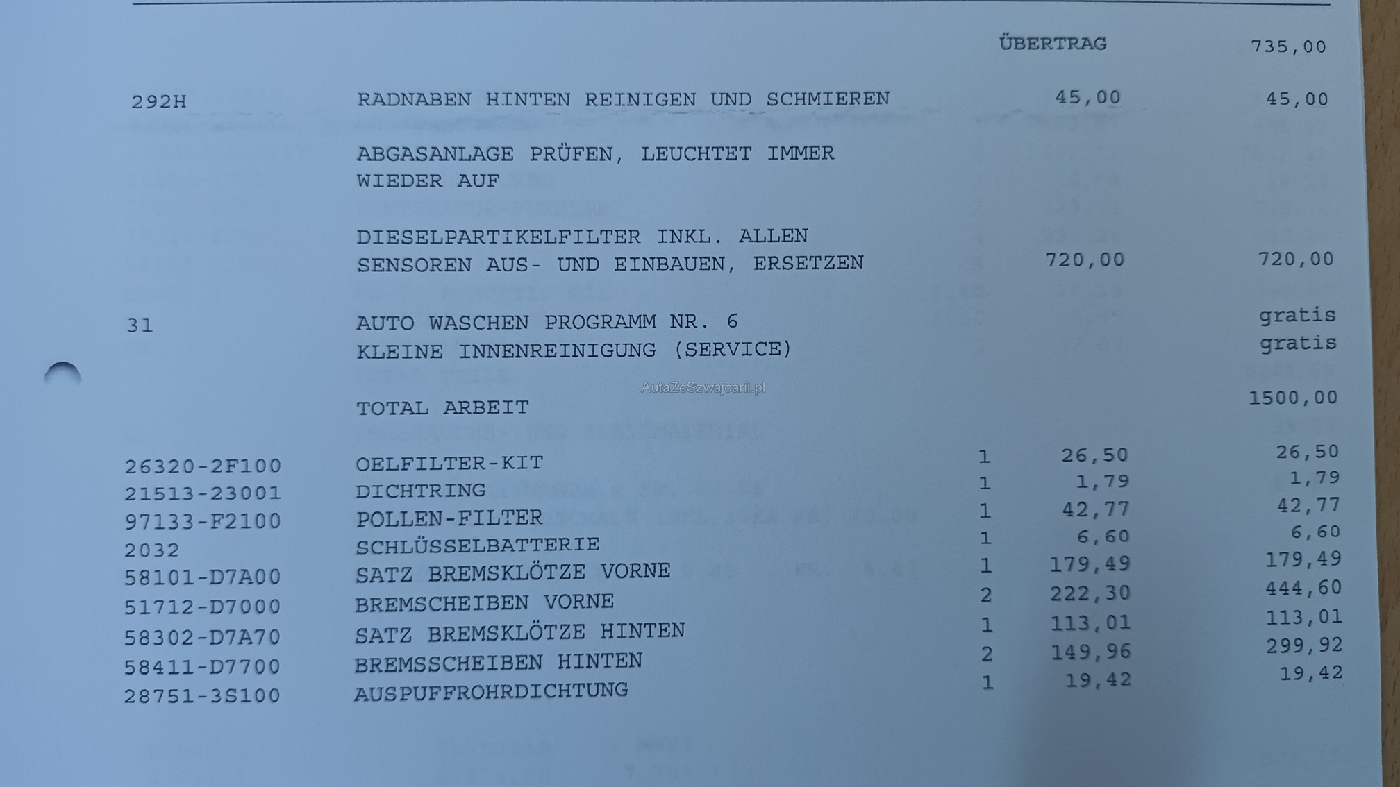 | Kommentar | sehr gepflegter Zustand leichter Hagelschaden Dieselpartikelfilter ist defekt (wurde bereits ersetzt im 2023) 8 fach bereift, Reifen müssen ers. werden Am Fahrzeug wurde keine vollumfängliche Prüfung der mechanischen Teile und der Carrosserie durchgeführt! Das Risiko liegt somit vollumfänglich beim Käufer. Um Missverständnisse zu vermeiden kann das Fahrzeug auf Voranmeldung besichtigt & getestet werden. Wird davon bewusst kein Gebrauch gemacht, liegt die Verantwortung beim Käufer. Nach Zuschlag, keine Nachverhandlungen möglich. Ab Platz ohne Garantie, Wandelung und Minderung werden wegbedungen. |