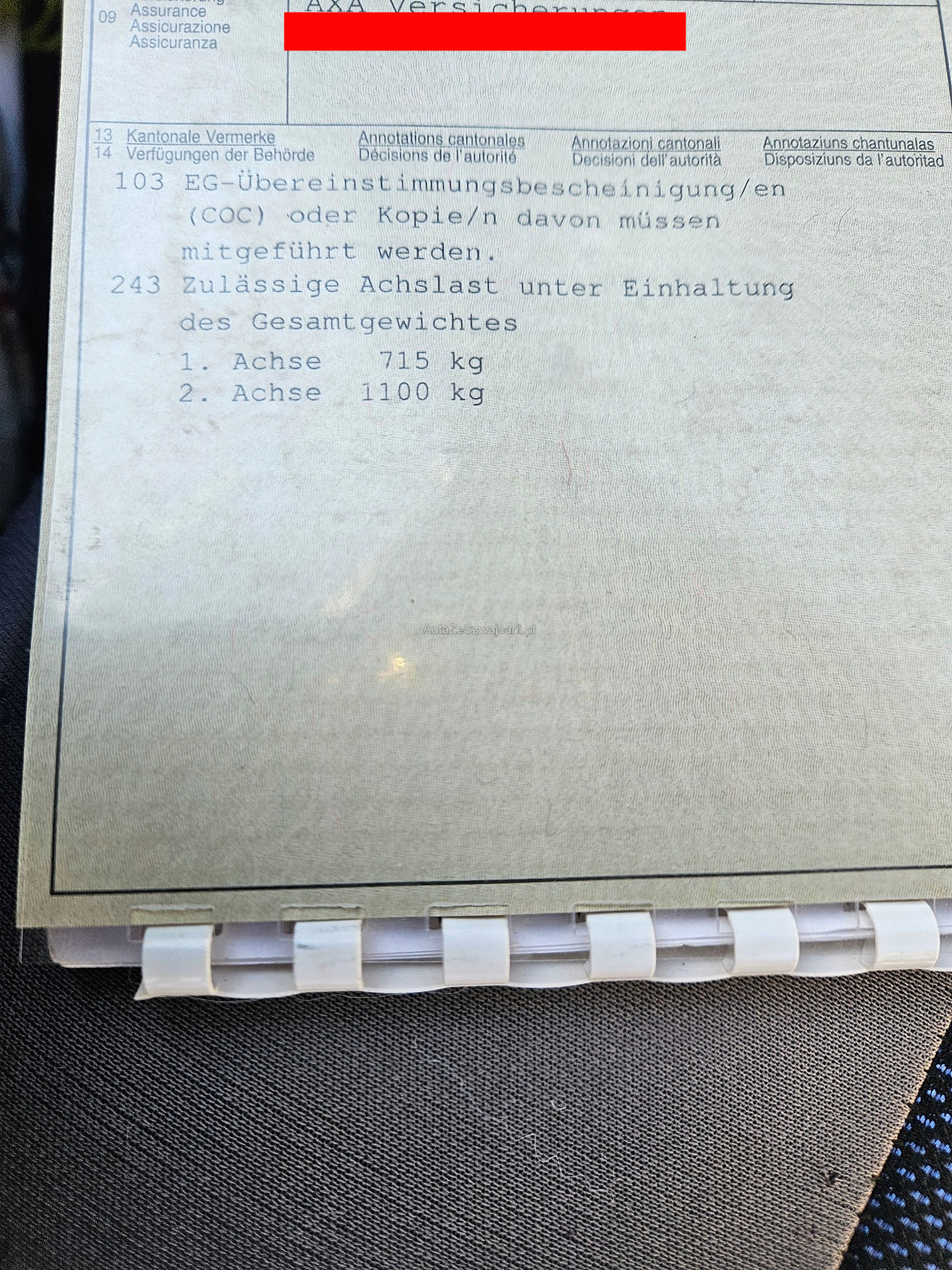 | Kommentar | ACHTUNG! Kopfdichtung def. Oder Zyl.Kopf Prüfung mit Kohlendioxid Messer Keine weiteren Prüfungen durchgeführt. Keine Zustandsanalyse vom Fahrzeug. |