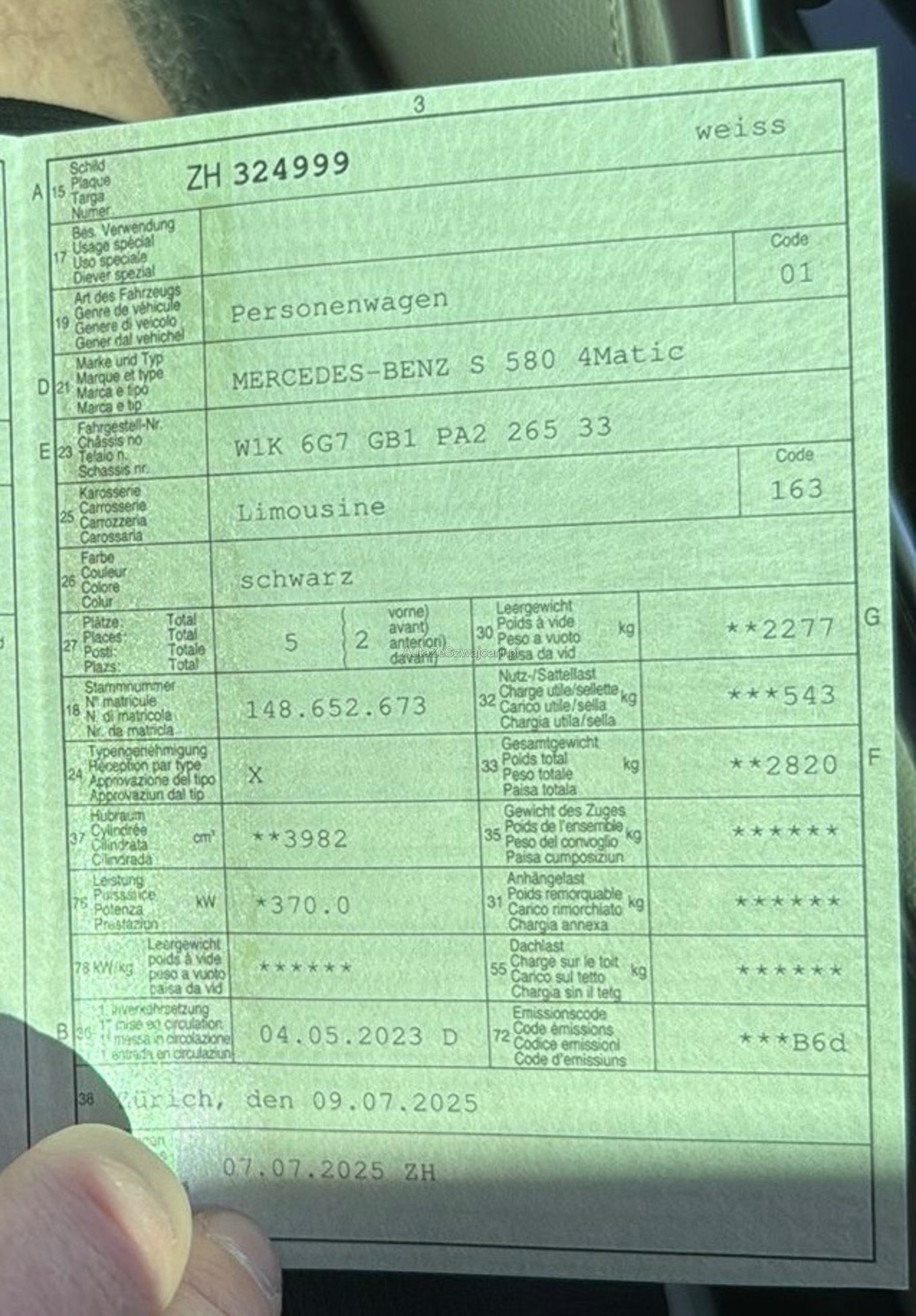 | Kommentar | Der Mercedes-Benz S 580 4MATIC wurde im Auftrag des Kunden nach Zuschlag direkt mit ihm abgewickelt. Das Fahrzeug befindet sich in einem sehr gepflegten Zustand und überzeugt durch seine hochwertige Ausstattung sowie seine souveräne Fahrleistung. Eine Vollgarantie besteht bis Juni 2027, was zusätzliche Sicherheit bietet. Zudem wurden kürzlich neue Reifen montiert und ein frischer Service durchgeführt, sodass kein Wartungsstau besteht. Sämtliche Änderungen und Extras, einschließlich der Felgen, sind ordnungsgemäß eingetragen. |
