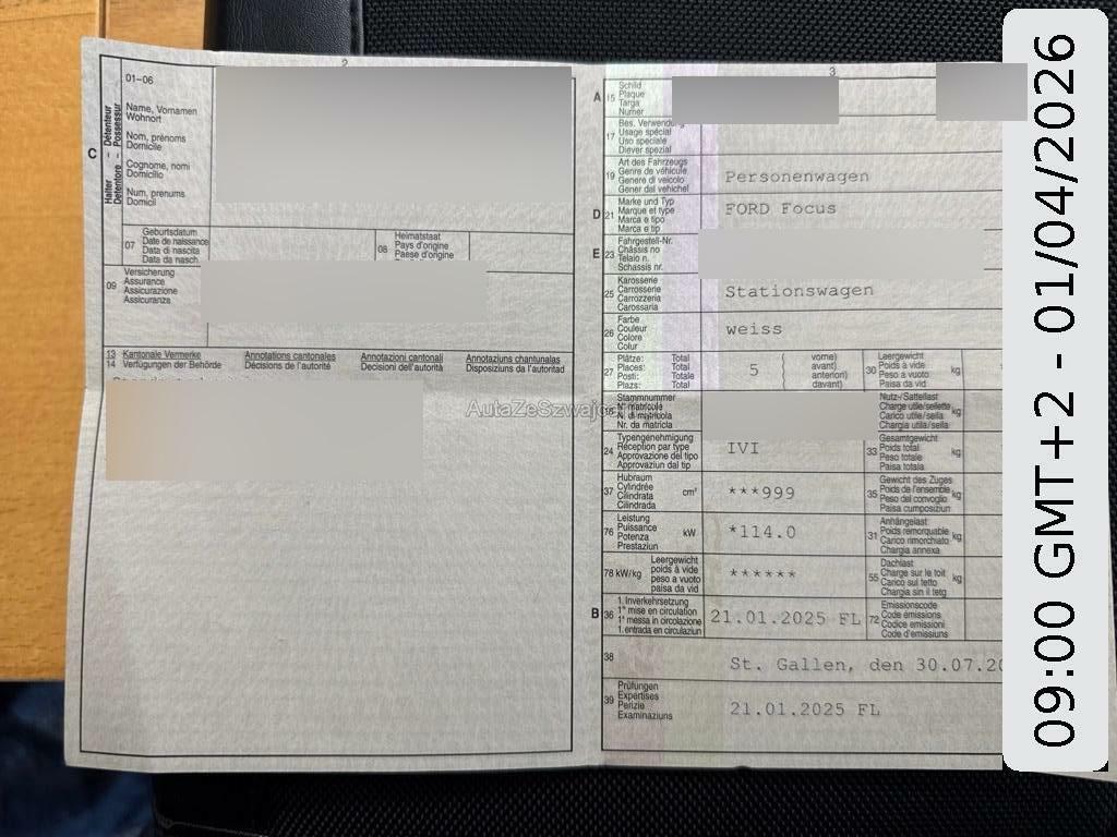 | Fahrzeugausweis | Vorhanden |