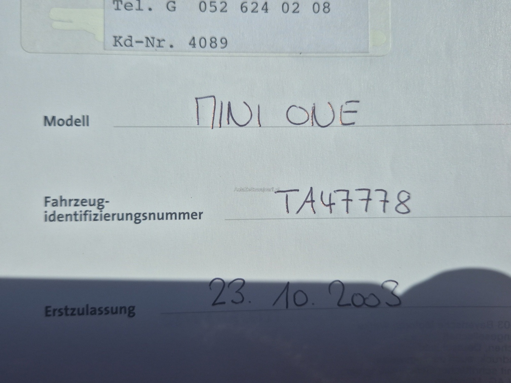 | Kommentar | - Heizung funktioniert nicht mehr - 1 Schlüssel havariert - Sommerrad: 1 Rad platt + gepflegtes Auto keine vollständige Prüfung, kein Werkstatt-Test, Aufzählung nicht vollständig ABHOLUNG NACH ZUSCHLAG / VERFÜGBARKEITS-DATUM INNERT 7 TAGEN ERFORDERLICH, DANACH FR. 15.-/TAG STANDPLATZ-GEBÜHREN BARZAHLUNG BEI ABHOLUNG / MONTAG-FREITAG 08:00-12:00 UND 13:30-17:00 IM KUNDENAUFTRAG ZU VERKAUFEN, KEINE MWST VORSTEUER AUSWEISBAR. |