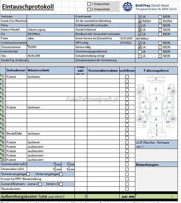 | Information | Keine technische Prüfung (Werkstatttest) vorgenommen Fahrzeug ab Platz, ohne Garantie und Aufbereitung. DPF/FAP Filter nicht kontrolliert Keine Gewähr auf die Angaben der Sonder- und Serienausstattung / keine mechanische Prüfung. Fahrzeug wurde unzerlegt expertisiert / keine Haftung für allfällige, nach Demontage bekanntwerdenden Mängel. Fahrzeugbereifung und Ausstattung gemäss Fotos / Fahrzeugkauf auf eigenes Risiko ab Platz ohne Nachwährschaft. - Letzter Service am 20.01.2026 bei 164'985km - MFK fällig - Diverse Dellen und Kratzer |