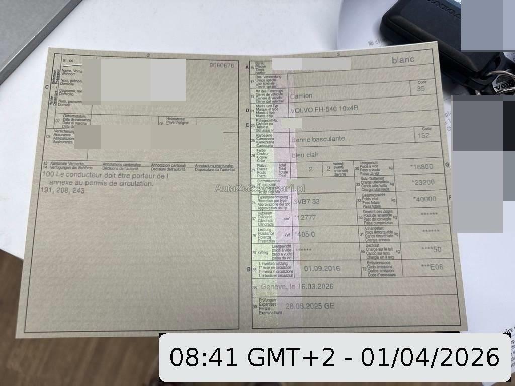 | Zusatzinformationen | Die (vom Fahrzeugexperten) ermittelten Reparaturkosten beziehen sich auf das versicherte Ereignis. Allfällige zusätzliche, nicht versicherte Schäden/Vorschäden, sind in den Reparaturkosten nicht enthalten. Die deklarierten Ausstattungsmerkmale können von der effektiven Ausstattung abweichen.Achtung: Bei dieser Auktion handelt es sich vorerst um eine Restwert-Ermittlung, bei der ein definitiver Verkauf bzw. die Abgabe des Objektes an den Höchstbietenden von einem allfälligen Übernahmeangebot des Fahrzeughalters abhängt. Der Käufer von inländisch immatrikulierten Fahrzeugen muss sicherstellen, dass bei einer Verschrottung oder dem Export des Fahrzeuges ins Ausland, ein allfälliges LSVA-Erfassungsgerät (Tripon/Emotach), an die zuständige Stelle der eidgenössischen Zollverwaltung EZV zurückgegeben wird. Die Kosten der Rückgabe gehen zu Lasten des Käufers. Nicht zurückgegebene Geräte werden von der eidgenössischen Zollverwaltung dem Restwertkäufer in Rechnung gestellt.Adresse für die Rückgabe des LSVA-Erfassungsgerätes:EinschreibenMobatime Swiss AGStettbachstr. 58600 Dübendorf Das Fahrzeug steht beim nachfolgend aufgeführten Standortbetrieb und muss vor Gebotsabgabe besichtigt werden.Bitte melden Sie Ihren Besuch beim Standortbetrieb telefonisch an:Truck Center Aclens Volvo Group (Suisse) SA, succursaleRoute de la Venoge 31123 Aclens+41218670011 |