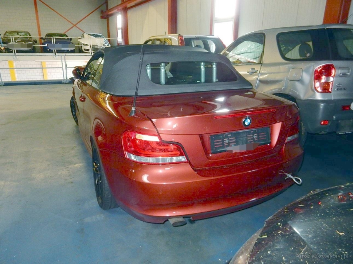 | Serial equipment | Bremsassistent (BAS), Tagfahrlicht, Wegfahrsperre elektronisch, Radzierblenden, Airbag Fahrer und Beifahrer, Oelstandsanzeige, Abschliessbare Radschrauben, Interieurleisten in Titan hell, Exterieurumfänge in Wagenfarbe, Sitzbelegungserkennung für Beifahrersitz, Zentralverriegelung mit Fernbedienung, Check-Control-System, Cornering Brake Control (CBC), Durchladeklappe, Gurtstraffer vorne, Motor Start-/Stop-Anlage, Aussenspiegel rechts und linkselektrisch verstellbar, Scheibenwischer vorne mit Intervall, Seitenaufprall-Schutzsystem, Heckscheibenheizung, Überrollschutzsystem, Kopfstützen hinten, Nichtraucherausführung, Window-Kopfairbags, Halogenscheinwerfer, Make up-Spiegel links, Radio BMW Business CD, Wartungsintervall-Anzeige, Elektrisches Verdeck mit Fernbedienung, Dynamische Stabilitätskontrolle (DSC), Aux-In Anschluss, Anbauteile in Wagenfarbe, Lichtwarnsummer, Aussentemperaturanzeige, Grün getönte Scheiben, Elektrische Fensterheber vorne + hinten, Lenkrad längs- und höhenverstellbar, Seitenairbag für Fahrer und Beifahrer, Bremsbelag-Verschleissanzeige, Antiblockiersystem (ABS), Nebelscheinwerfer, Make up-Spiegel rechts, ISOFIX Kindersitzvorrichtung, Drittes Bremslicht, Stahlräder, Türgriffe aussen in Wagenfarbe, Reifen mit Notlaufeigenschaft, Aktive Kopfstützen, Innenlicht-Abschaltverzögerung, Drehzahlmesser, Uni-Lackierung, Zweiklanghorn, Dynamische Traktionskontrolle (DTC), Beleuchtetes Handschuhfach, 3-Punkt-Sicherheitsgurte auf allenPlätzen, Start-/Stop-Knopf, Katalysator geregelt, Stossstangen und Aussenspiegel inWagenfarbe, Stoff-Ausstattung, Nebelschlussleuchte, Vordersitze höhenverstellbar, Bordcomputer, 6-Gang-Getriebe, Tageskilometerzähler, Servotronic, Digital Uhr |