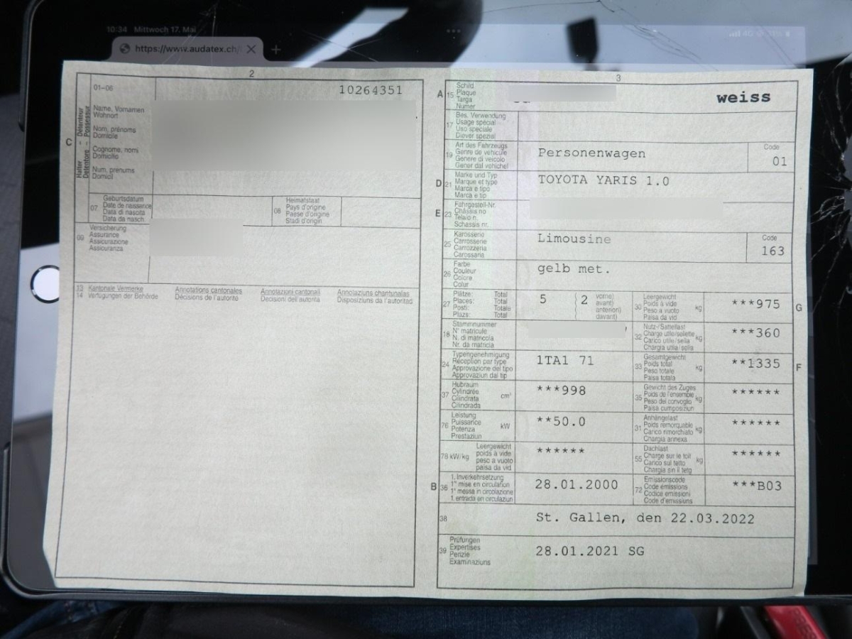 | Fahrzeugausweis | Vorhanden |