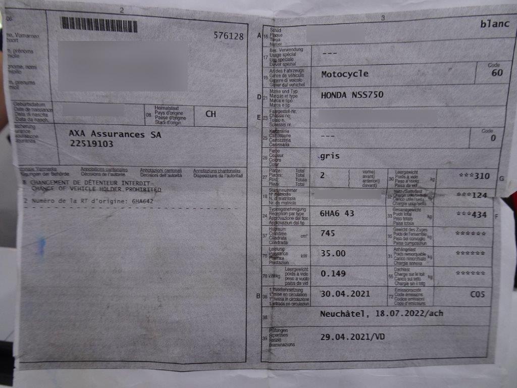 | Beschädigungen | Auspufftopf, Aussenspiegel links, Aussenspiegel rechts, Fussraster links, Fussraster rechts, Griff links, Griff rechts, Seitenkoffer rechts, Verschalungen links |