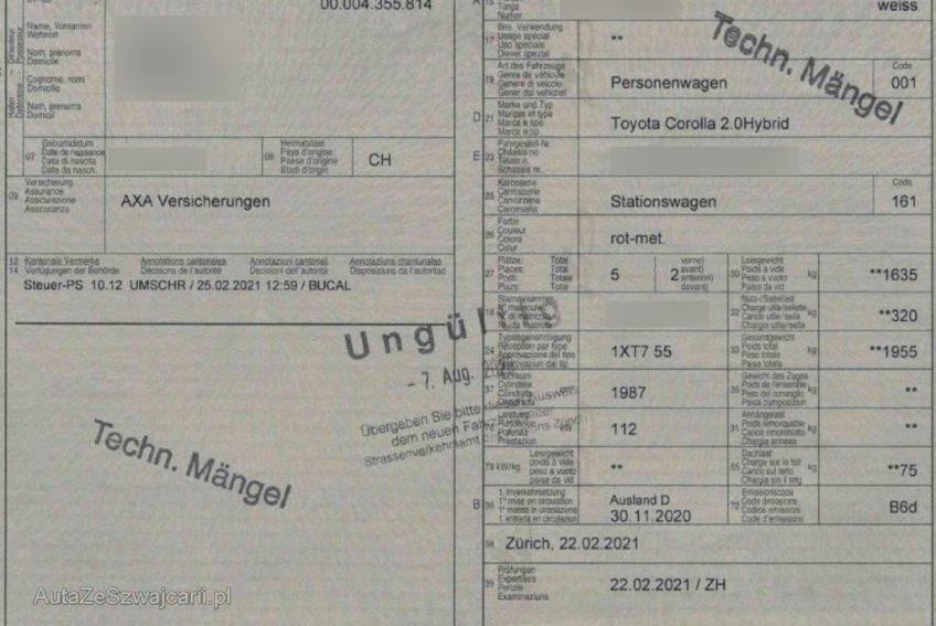 | Fahrzeugausweis | Vorhanden |