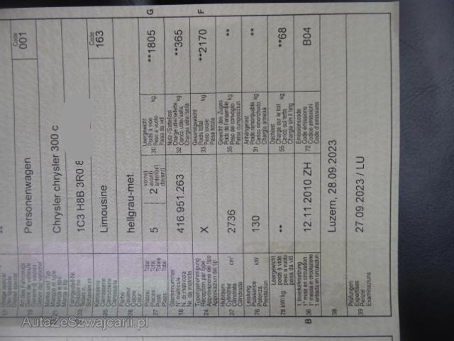 | Ausstattung | Serienaustattung Airbag Fahrer und Beifahrerseite Diebstahlwarnanlage Elektronische Wegfahrsperre Elektrische Fensterheber vorne + hinten Tempomat Bordcomputer Leichtmetallfelgen Servolenkung Nebelscheinwerfer Zentralverriegelung mit Fernbedienung Automatischer Scheibenwischer Innenspiegel automatisch abblendbar ABS und EBV Elektr. Bremskraftverteilung Reifendruck-Kontrollsystem RDK Fussmatten vorne und hinten ESP/ ASR Xenon-Scheinwerfer inkl. Waschanlage Aussenspiegel elektrisch verstellbar/ heizbar und anklappbar Automatische Niveauregulierung Hinterachse Bremsassistent EBA Memory für Fahrersitz/ Aussenspiegel/ Lenkrad Rücksitze geteilt umklappbar 60/40 Audiofernbedienung am Lenkrad Kindersitz-Vorbereitung Isofix Lenksäule mit Höhen- und Längseinstellung Vorhangairbags vorne + hinten Zwei Zonen-Klimaautomatik Park-Distanz-Sensor hinten Audiosystem mit 6-fach CD-Wechsler Gepäcknetz im Kofferraum Pack Swiss Luxury Getönte Scheiben Keine Gewähr auf die Angaben der Serienausstattungen Sonderausstattung Metallic-Lackierung |