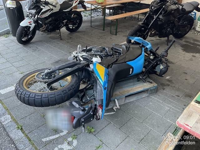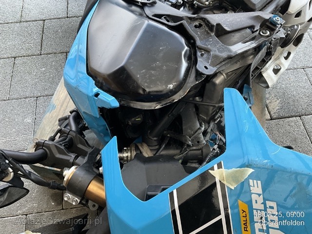 | Schadensbeschreibung | Beschreibung der Schäden: Rundum beschädigt, Gabel/Rahmen vorne abgerissen. Risiko auf alles, auch Motor! Motorrad liegend auf Palette gemäss Fotos. Km-Stand gemäss Garage ca. 900 - 1'000 km. |