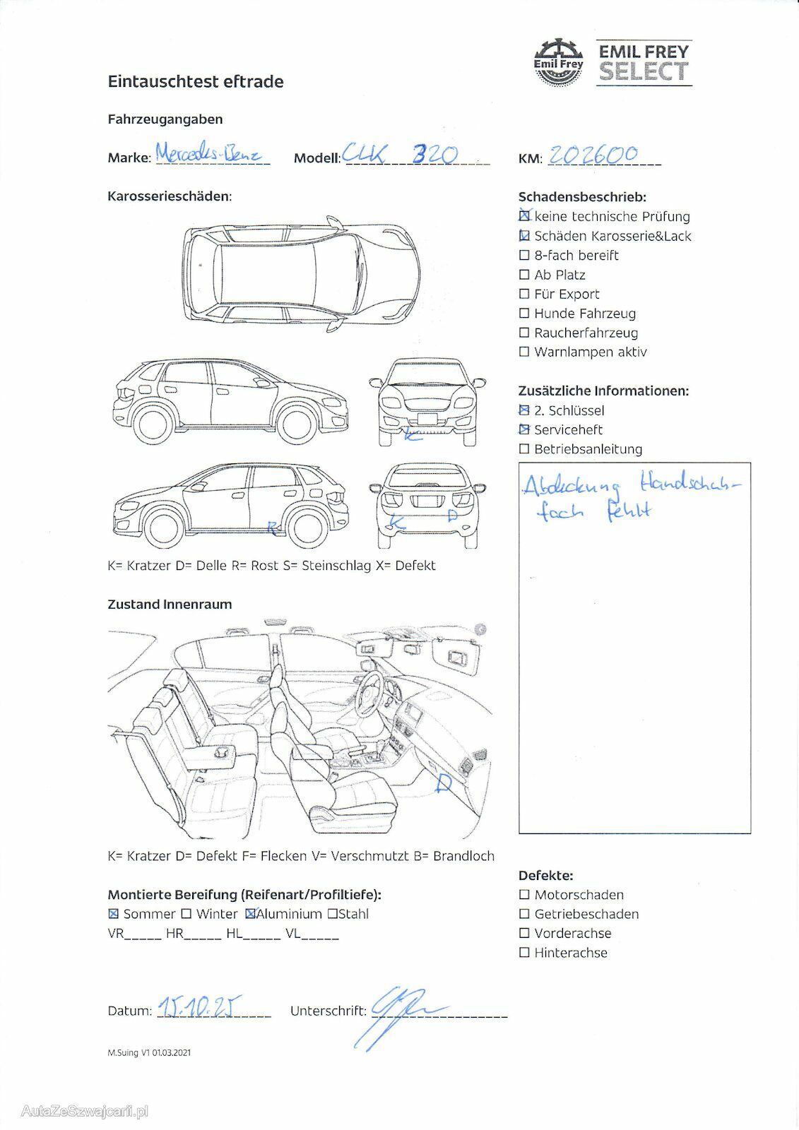 Keine technische Prüfung (Werkstatttest) vorgenommen