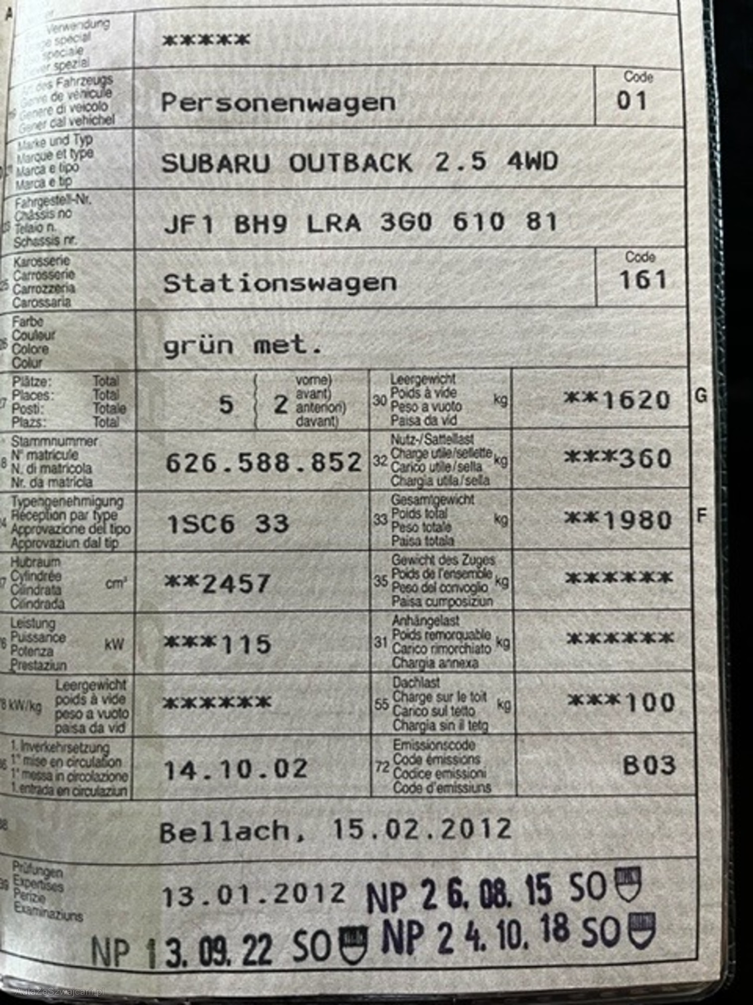 1. rejestracja: 14 października 2002