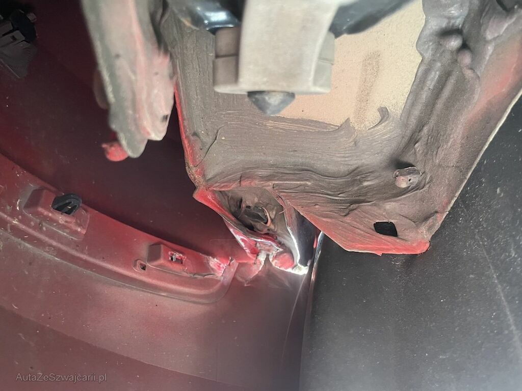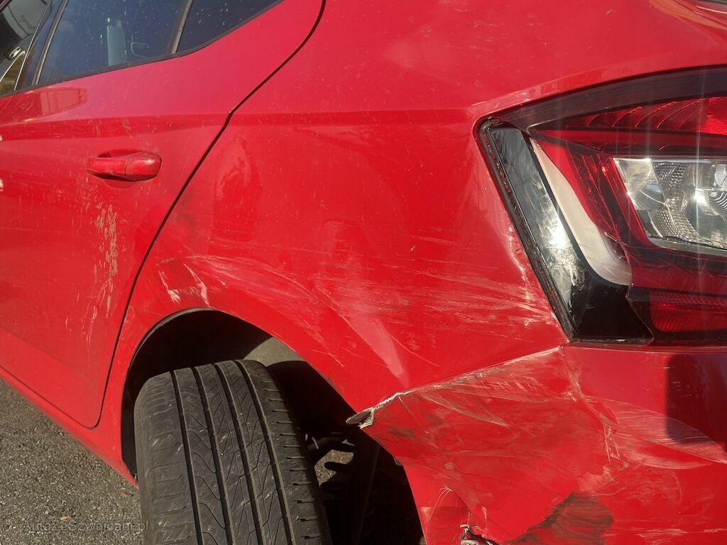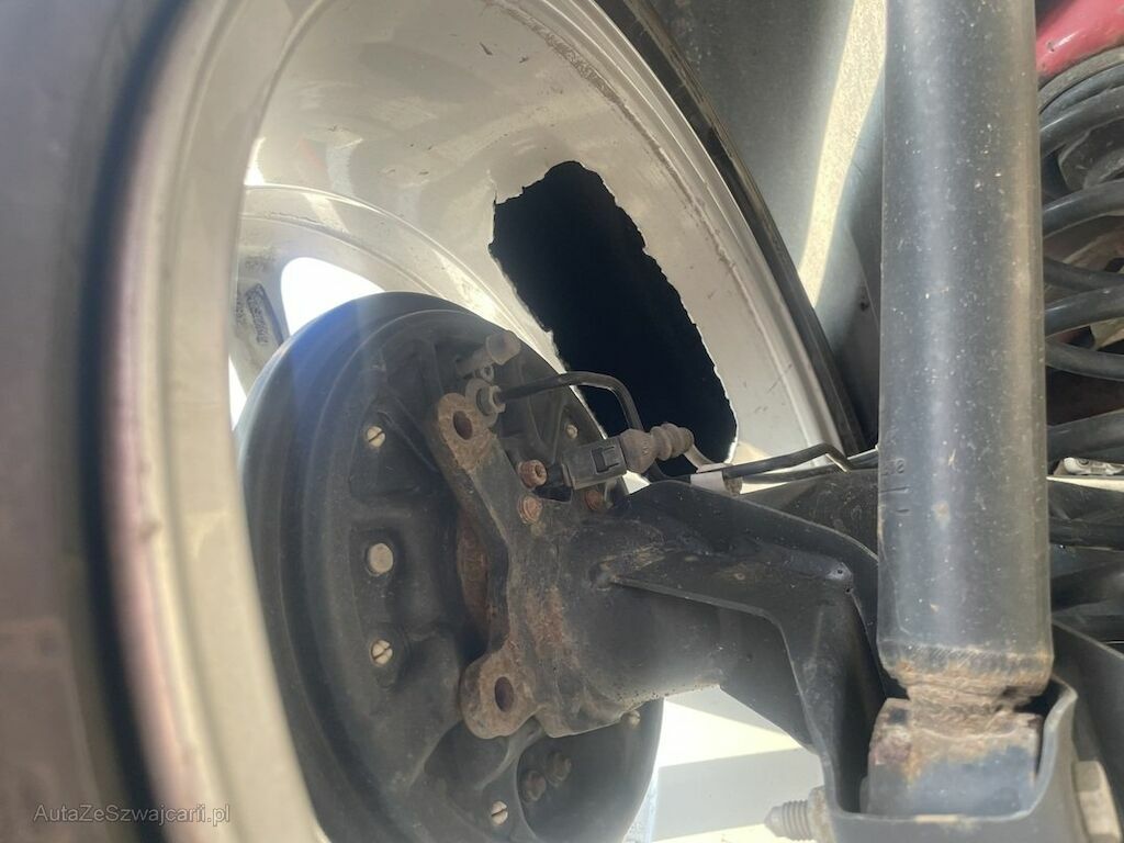 Pare-chocs, aile arrière gauche, essieu arrière, porte arrière, jupe, feu arrière endommagés.