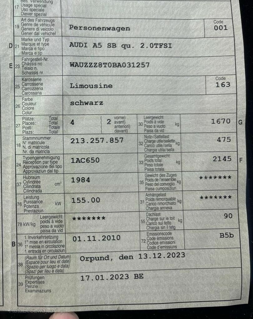 Typ | A5 Sportb 2.0TFSI quattro |