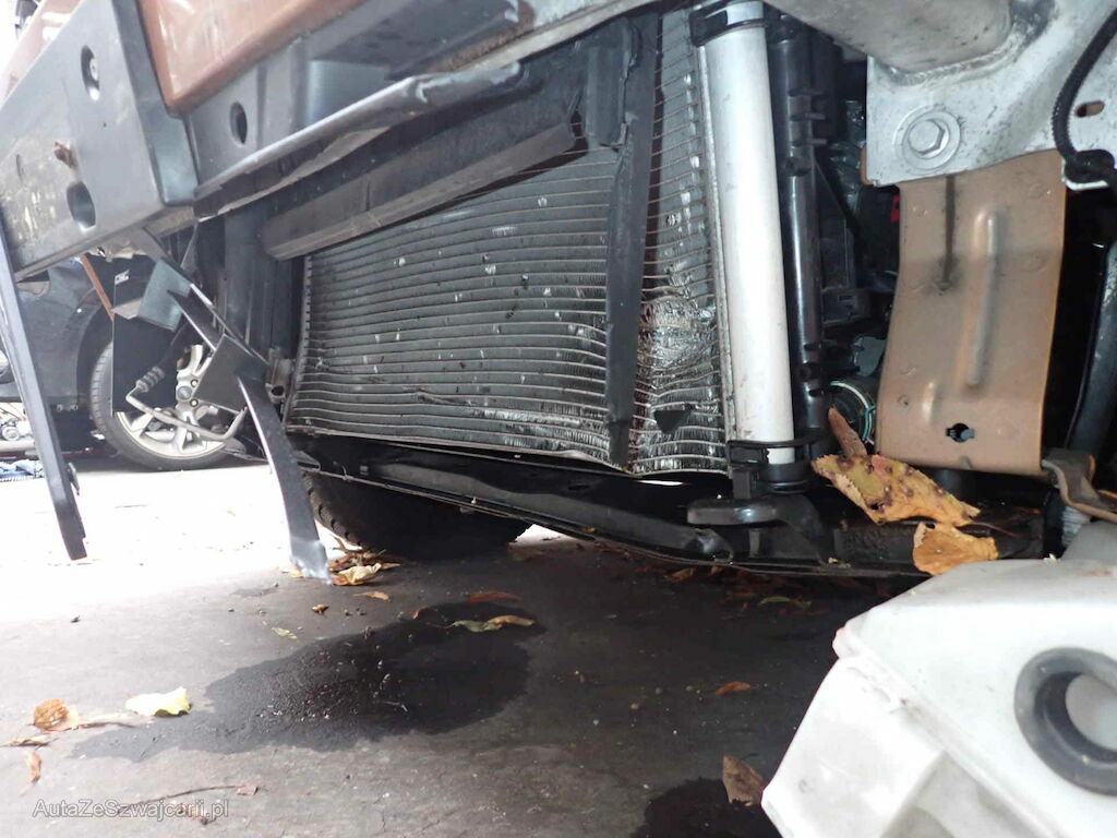 Anprall Front , dabei wurde der gesamte Frontbereich eingedrückt, Kühler und Frontmaske sind beschädigt