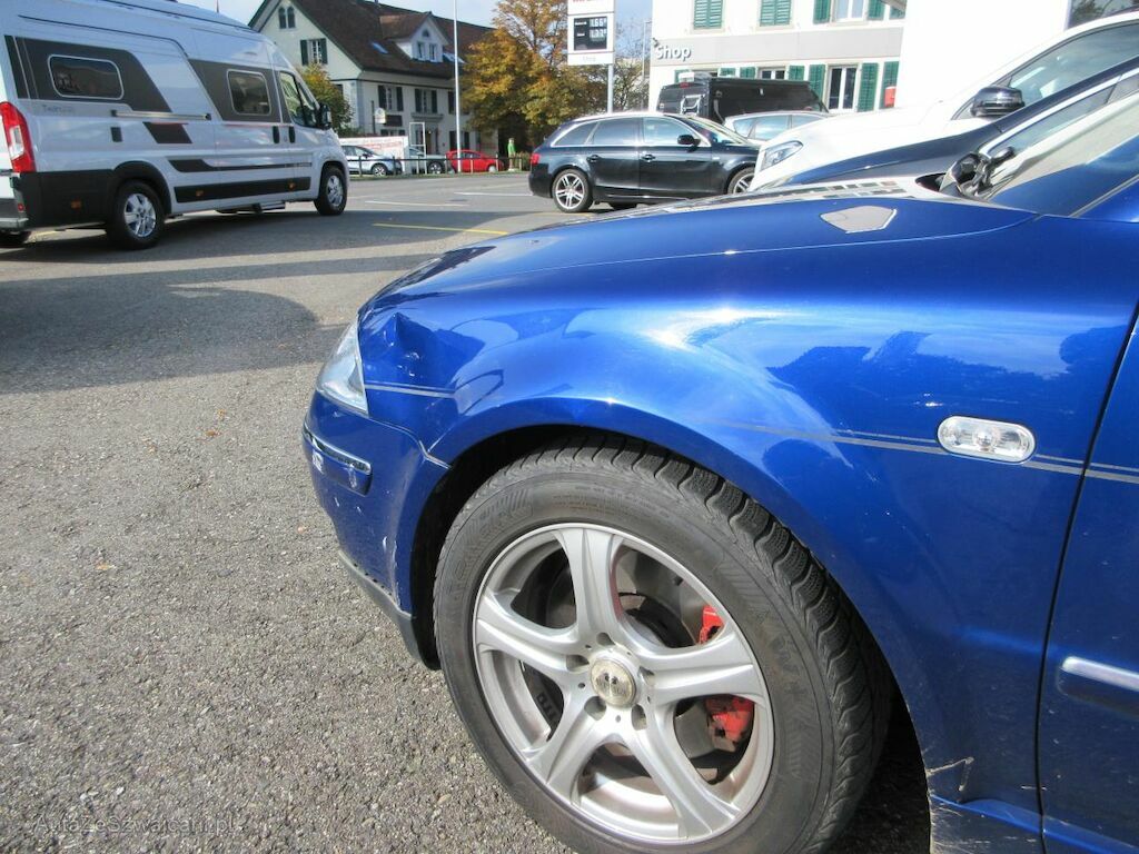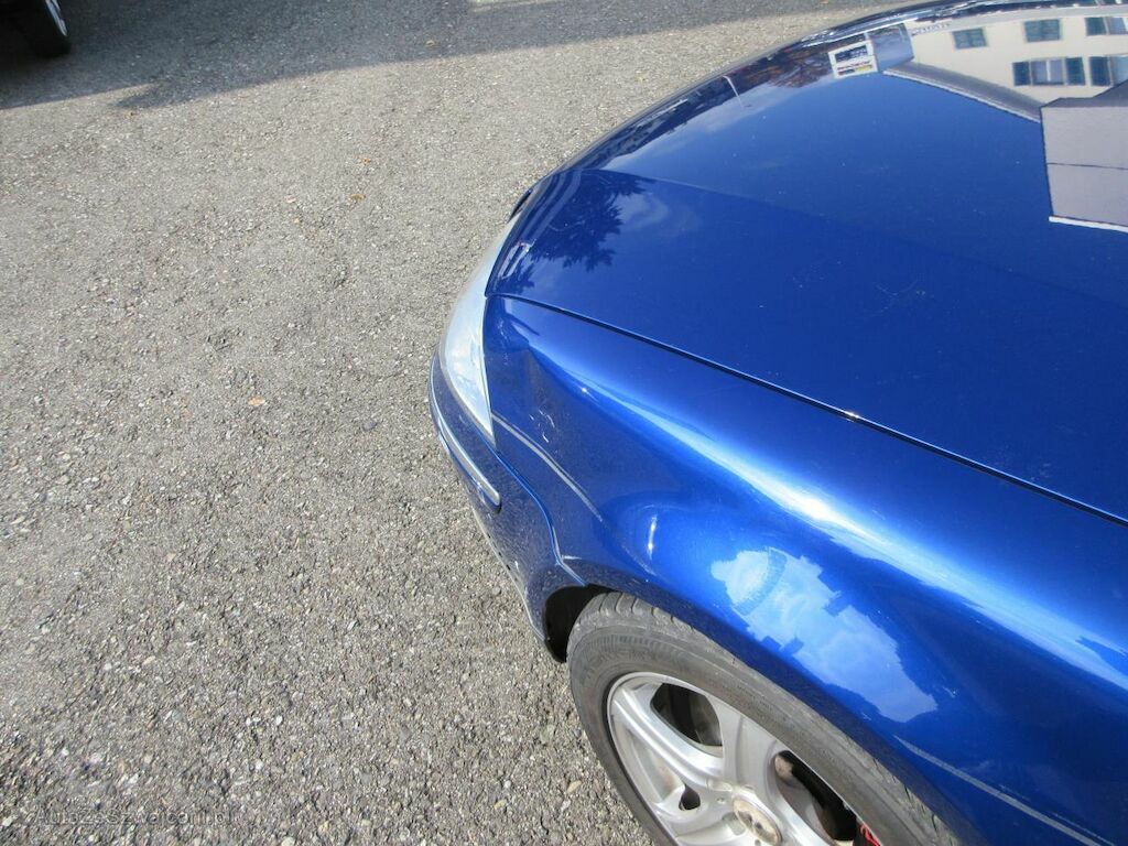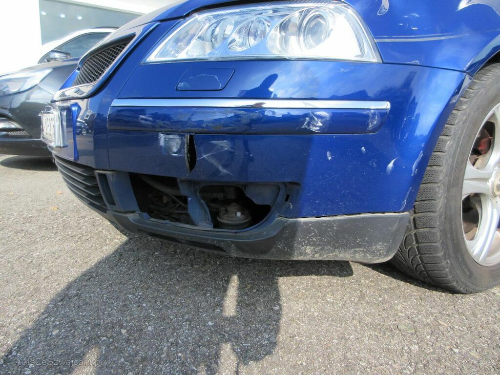 Stossfänger aufgerissen. Scheinwerfer gebrochen. Kotflügel eingebeult.