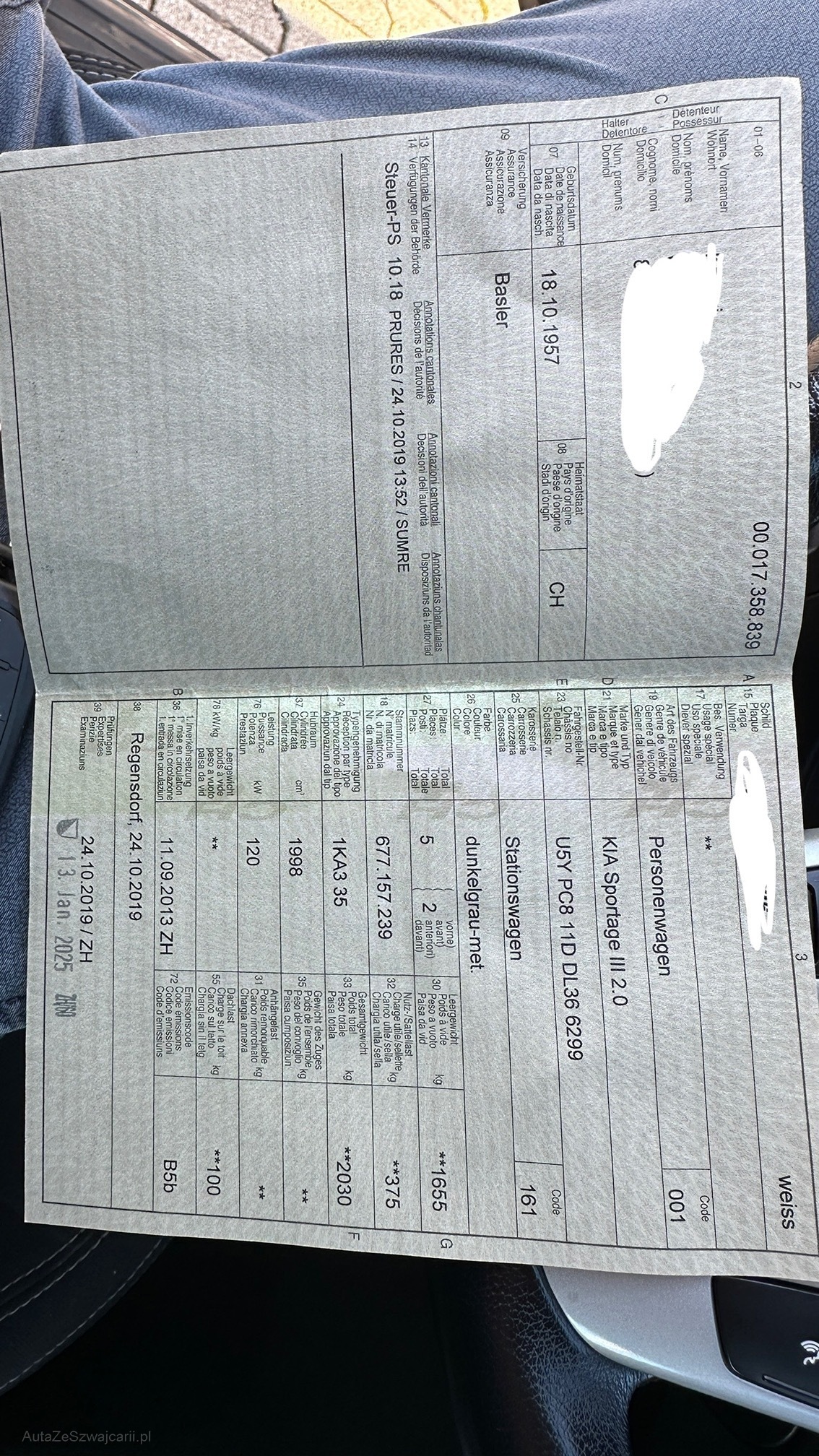 VIN | U5Y PC8 11D DL36 6299 |
