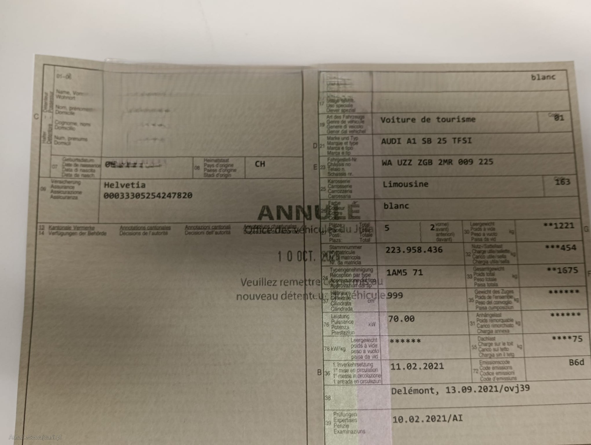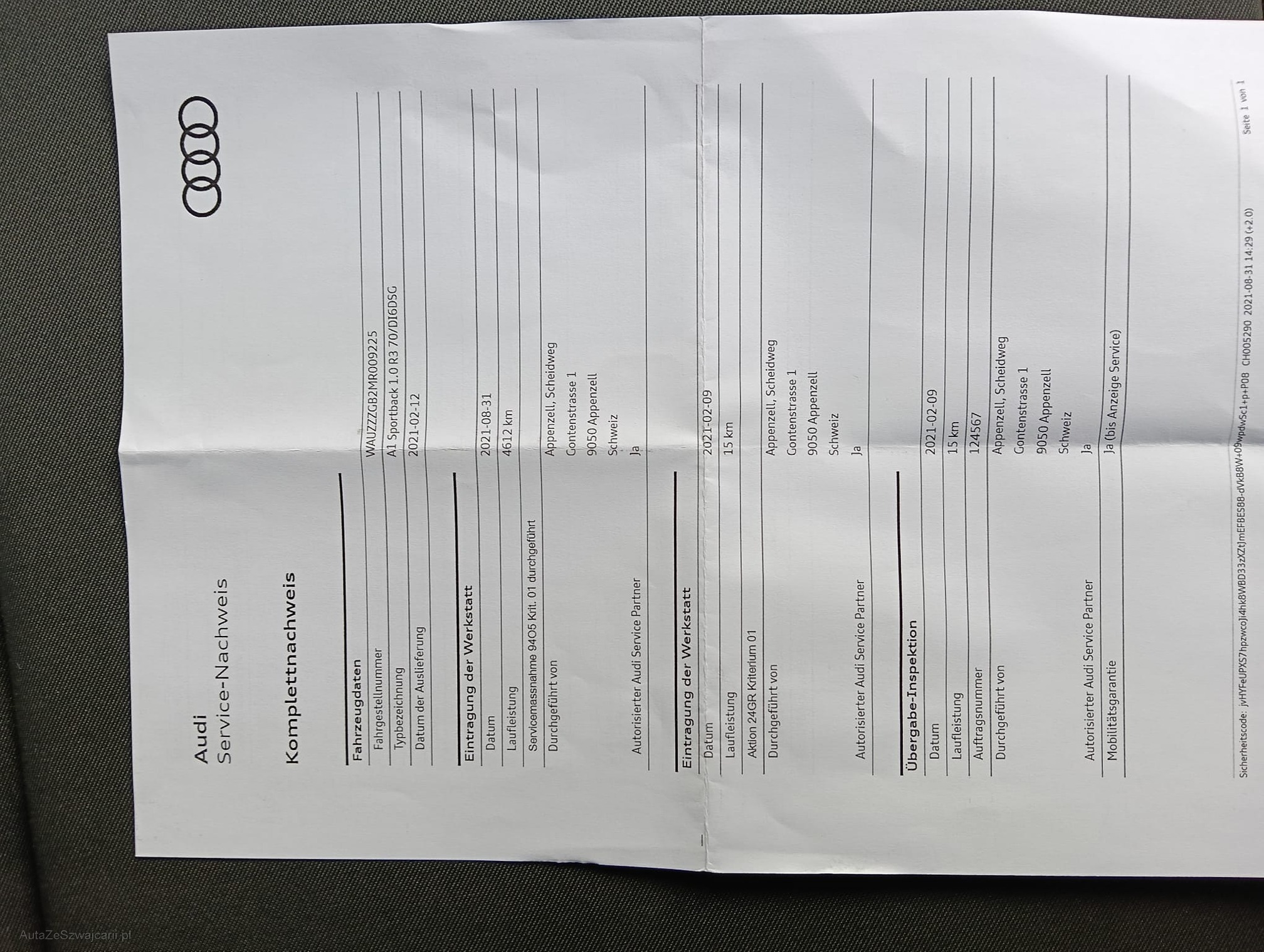 | Kommentar | - Fahrzeug hat noch ASSP bis 100 000km Gratisservice (Exkl. Flüssigkeiten !) - Fahrzeugbereifung, Fahrzeugzustand und Ausstattung gemäss Bildern. Unsere Fahrzeuge wurden keiner Prüfung unterzogen, Fahrzeugkauf auf eigenes Risiko ab Platz ohne Nachwährschaft. Das Gewährleisten für Sachmängel wird weggegangen. |