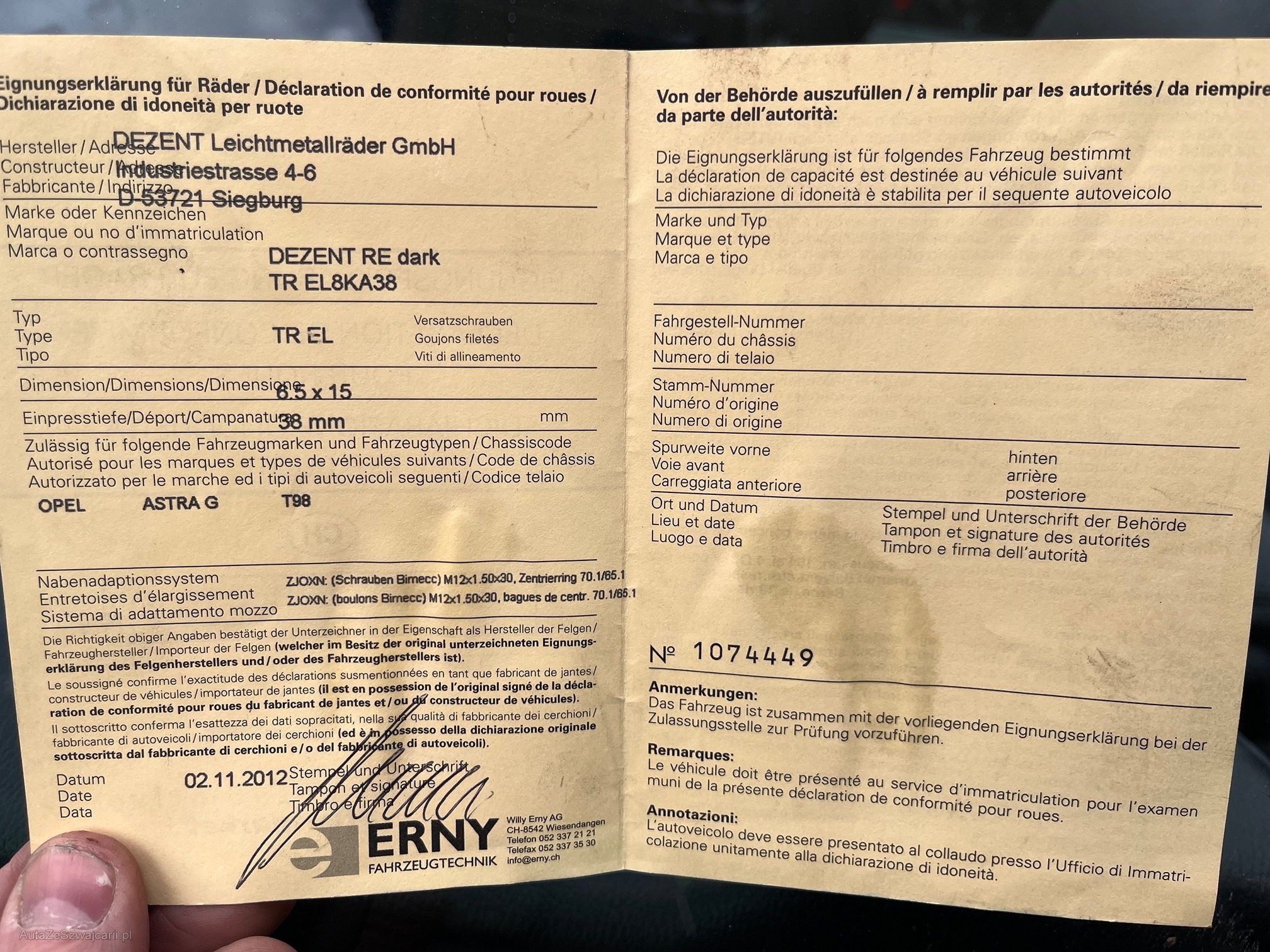 | Komplett mit Sommer- und Winterreifen | Yes |