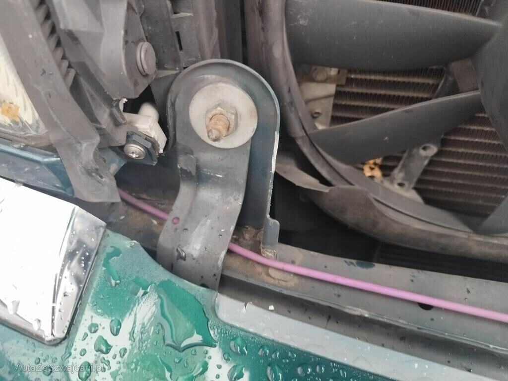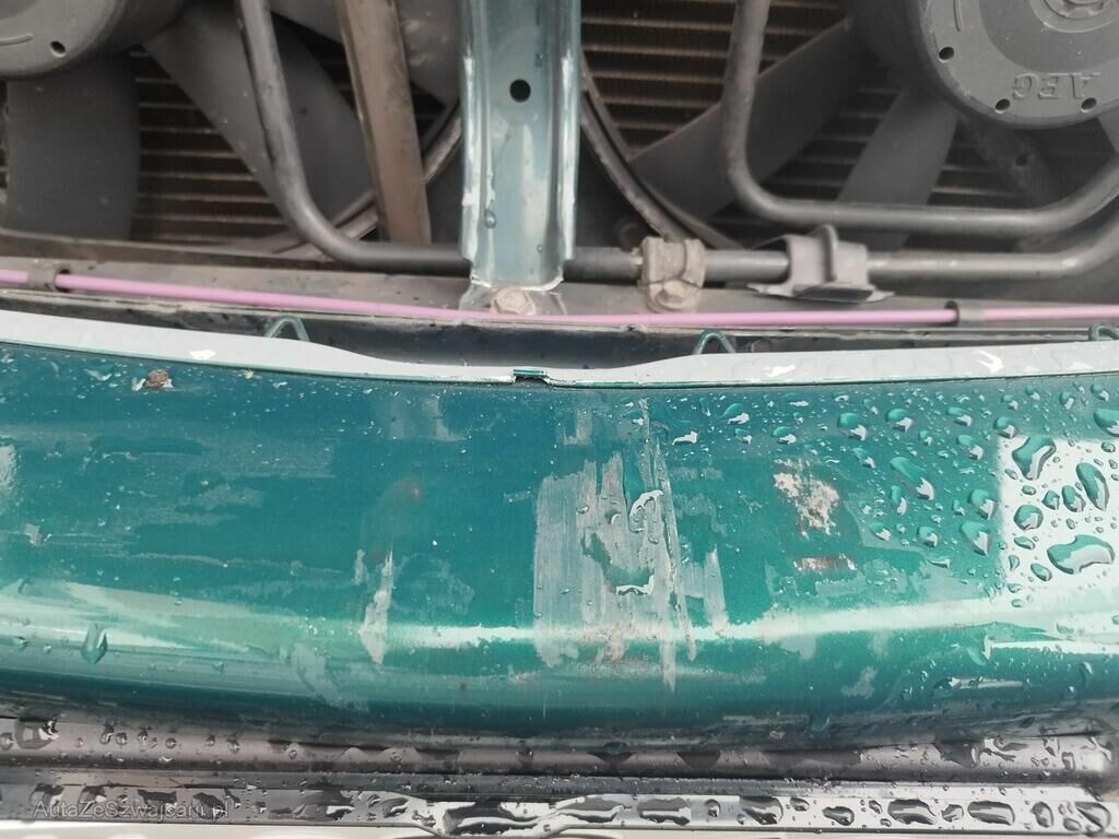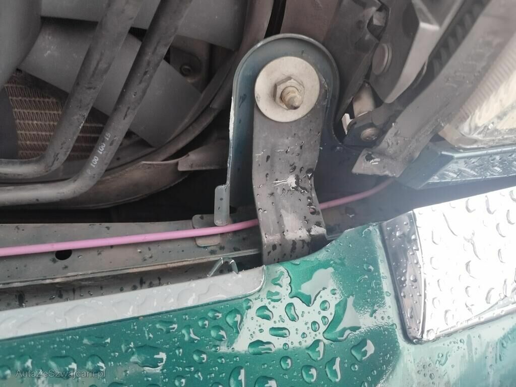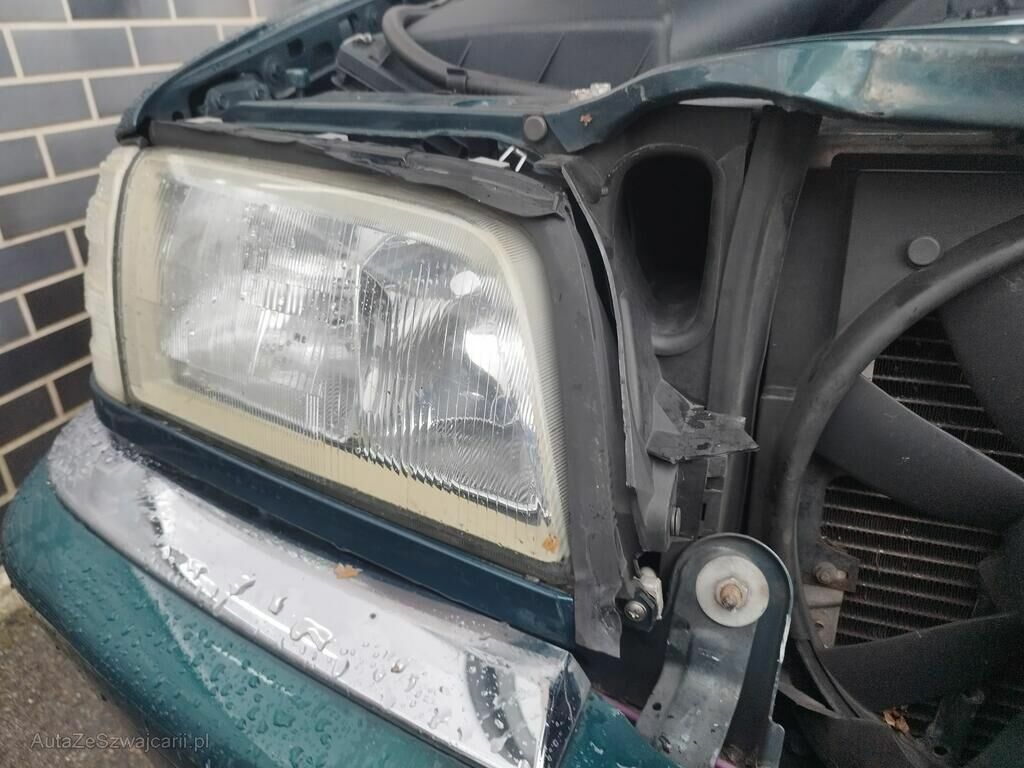 Die Stossstange vorne hat Kratzspuren, die Motorhaube ist geknickt, der Kühlergrill ist gerissen, die Frontmaske ist deformiert, die Kühler sind ausgerissen, die Lüfter stehen an.