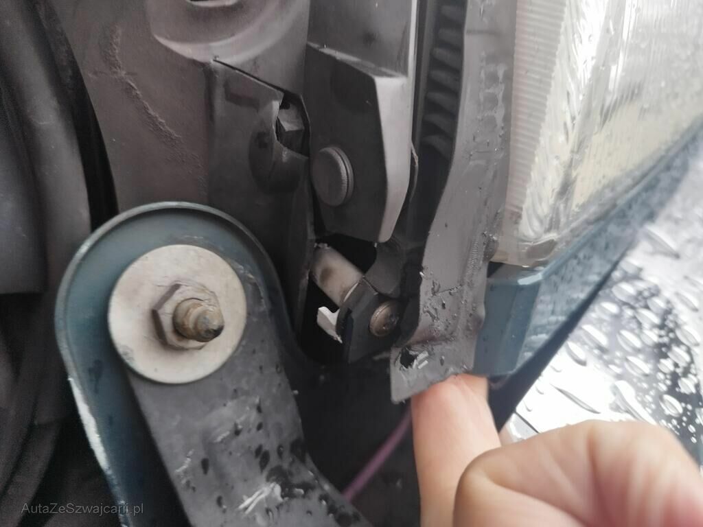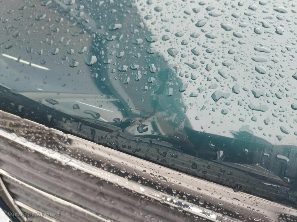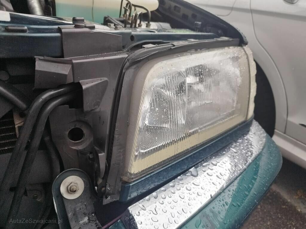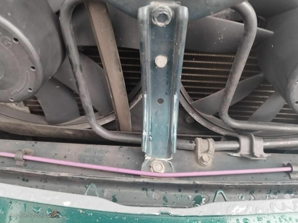 Die Stossstange vorne hat Kratzspuren, die Motorhaube ist geknickt, der Kühlergrill ist gerissen, die Frontmaske ist deformiert, die Kühler sind ausgerissen, die Lüfter stehen an.